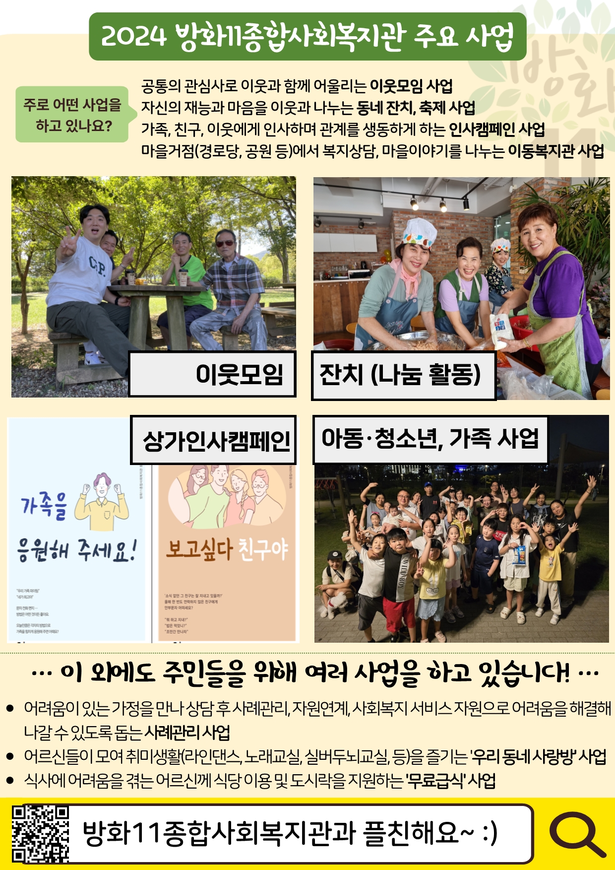안녕하세요! 방화11종합사회복지관입니다.