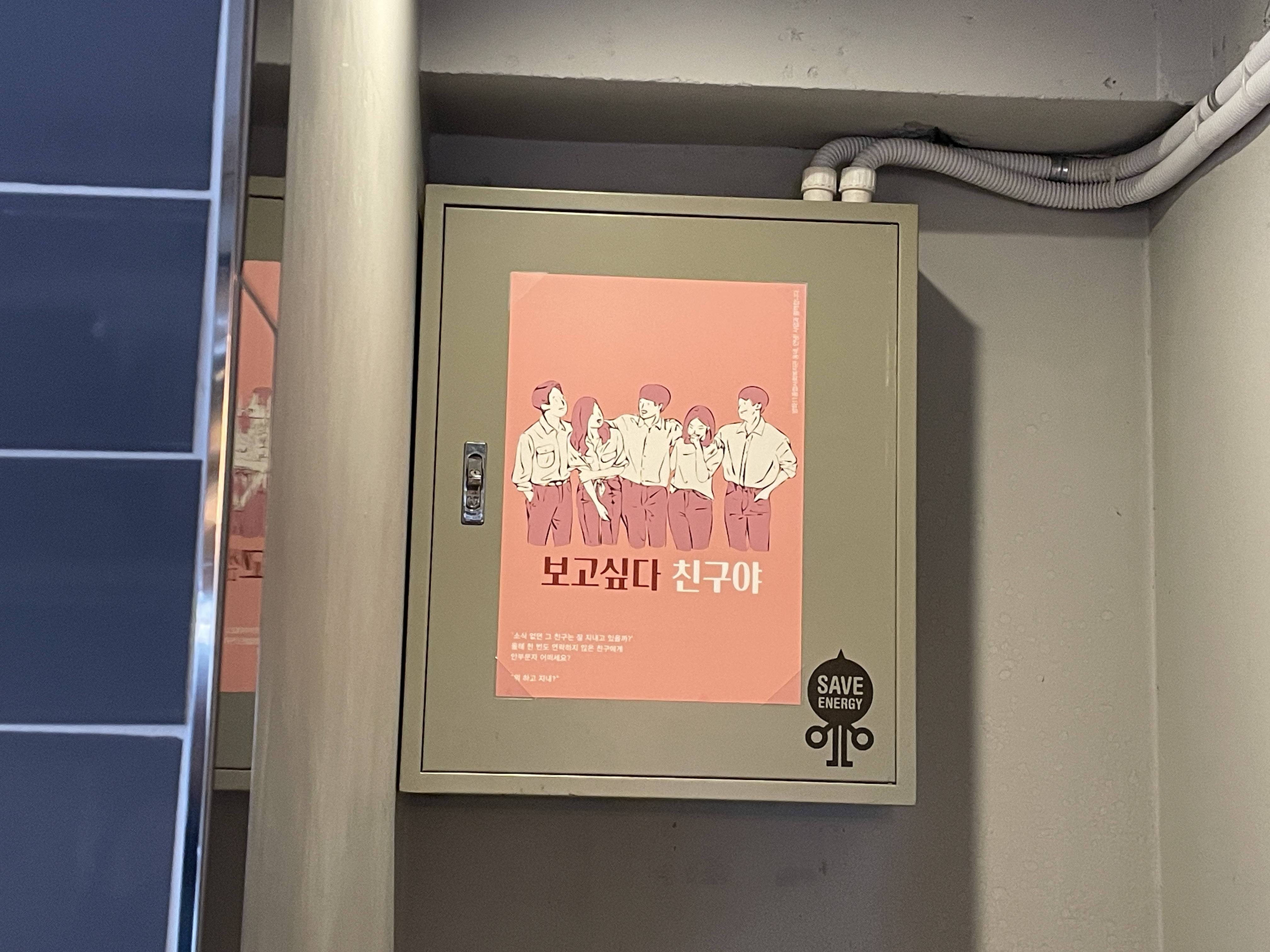 "계량기함 위에 붙이면 손님들이 손씻으러 오고가며 보시기 좋을 것 같아요."