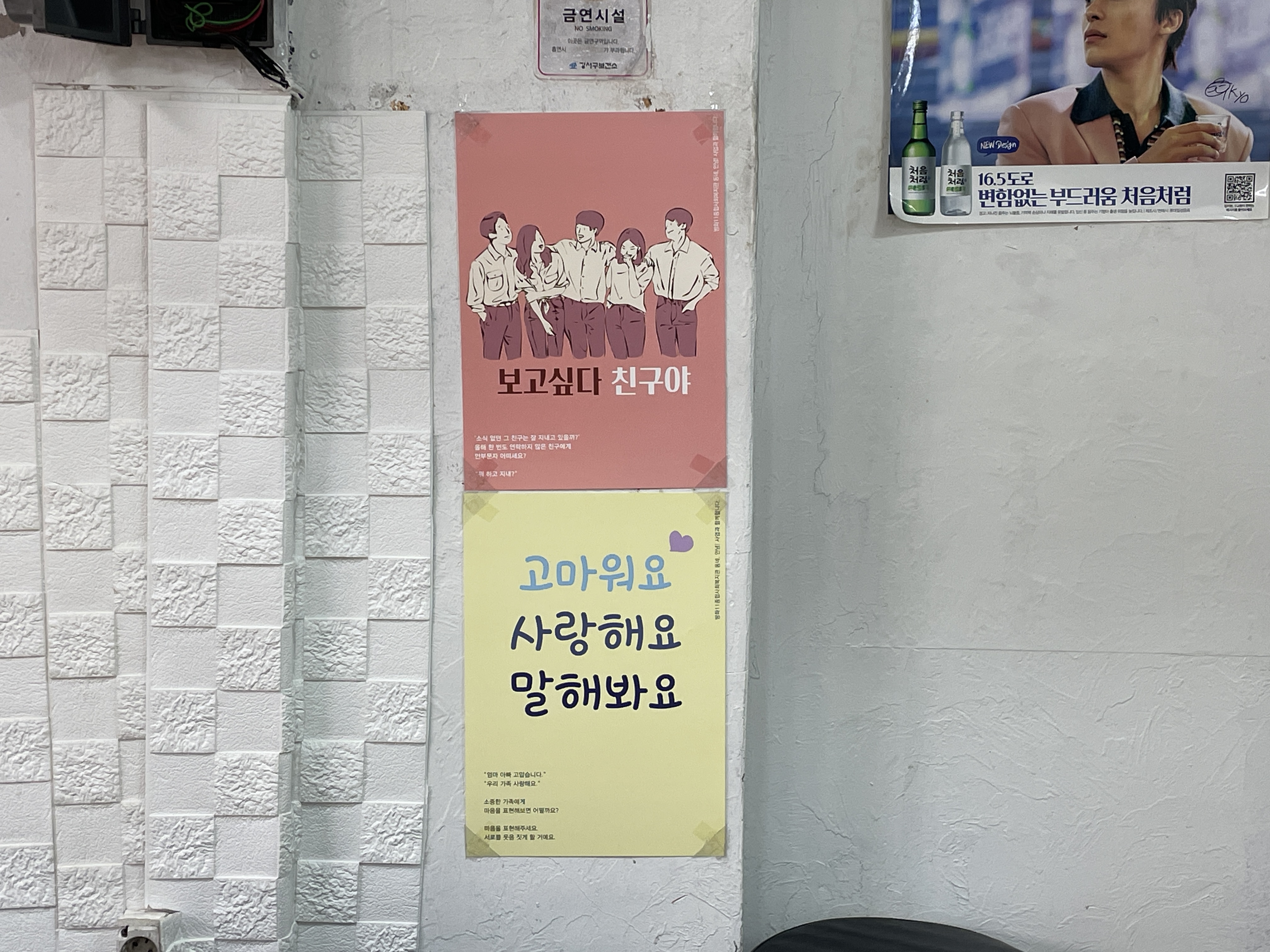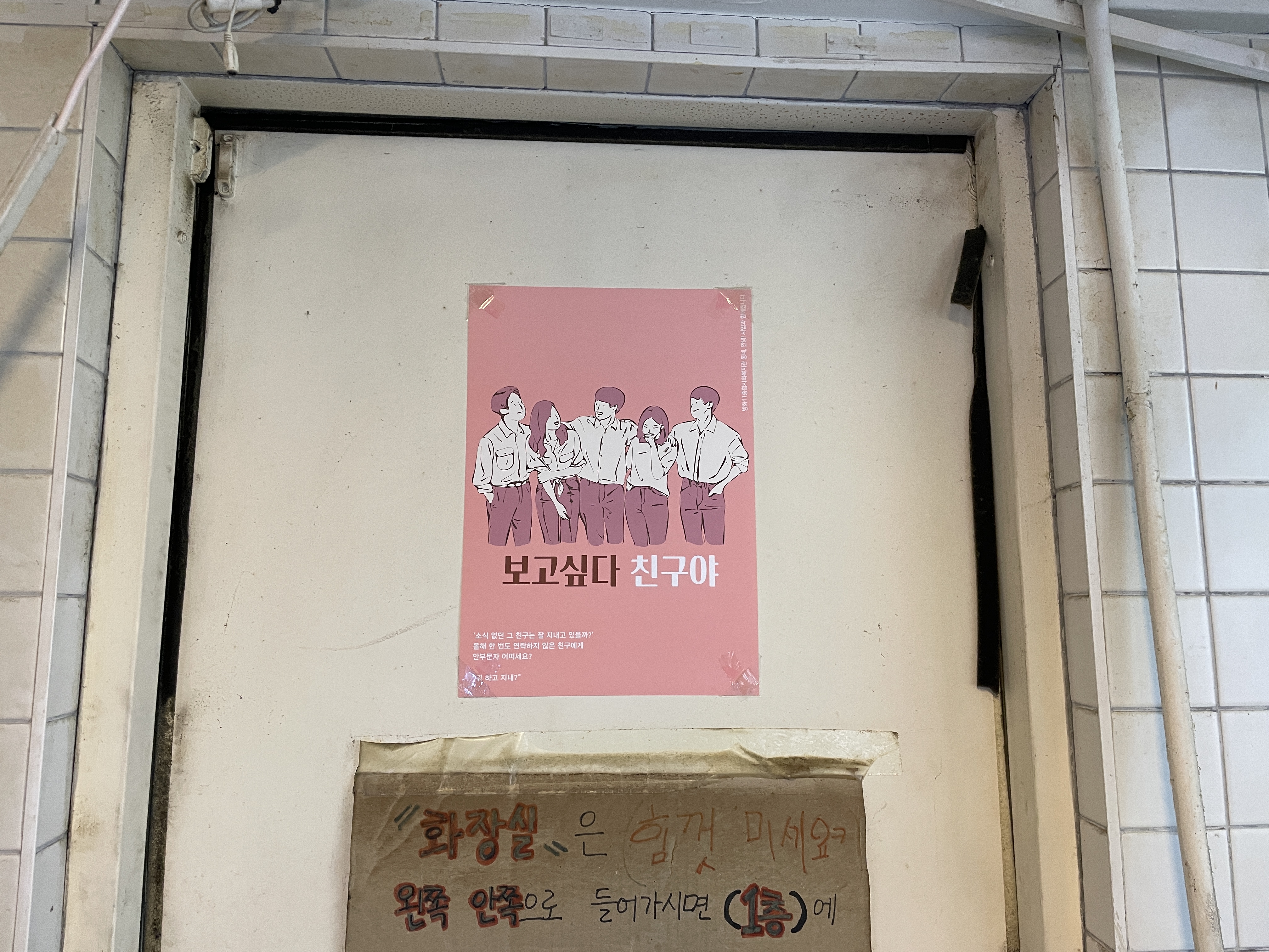 새로워진 카페 공간 안에서 손님들이 가장 많이 오고 갈만한 공간을 궁리하시고는 세면대 위 계량기함을 포스터 게시 공간으로 내어주셨습니다.