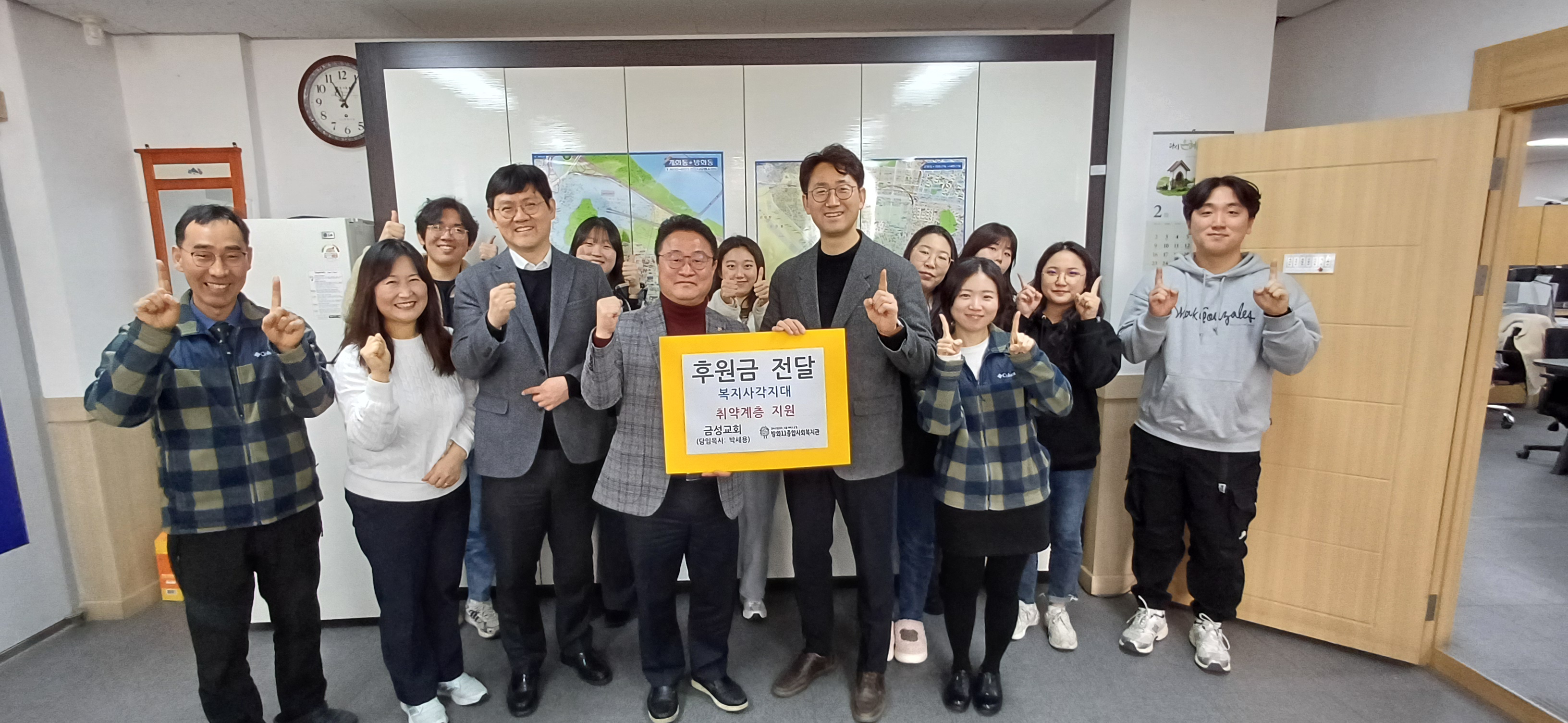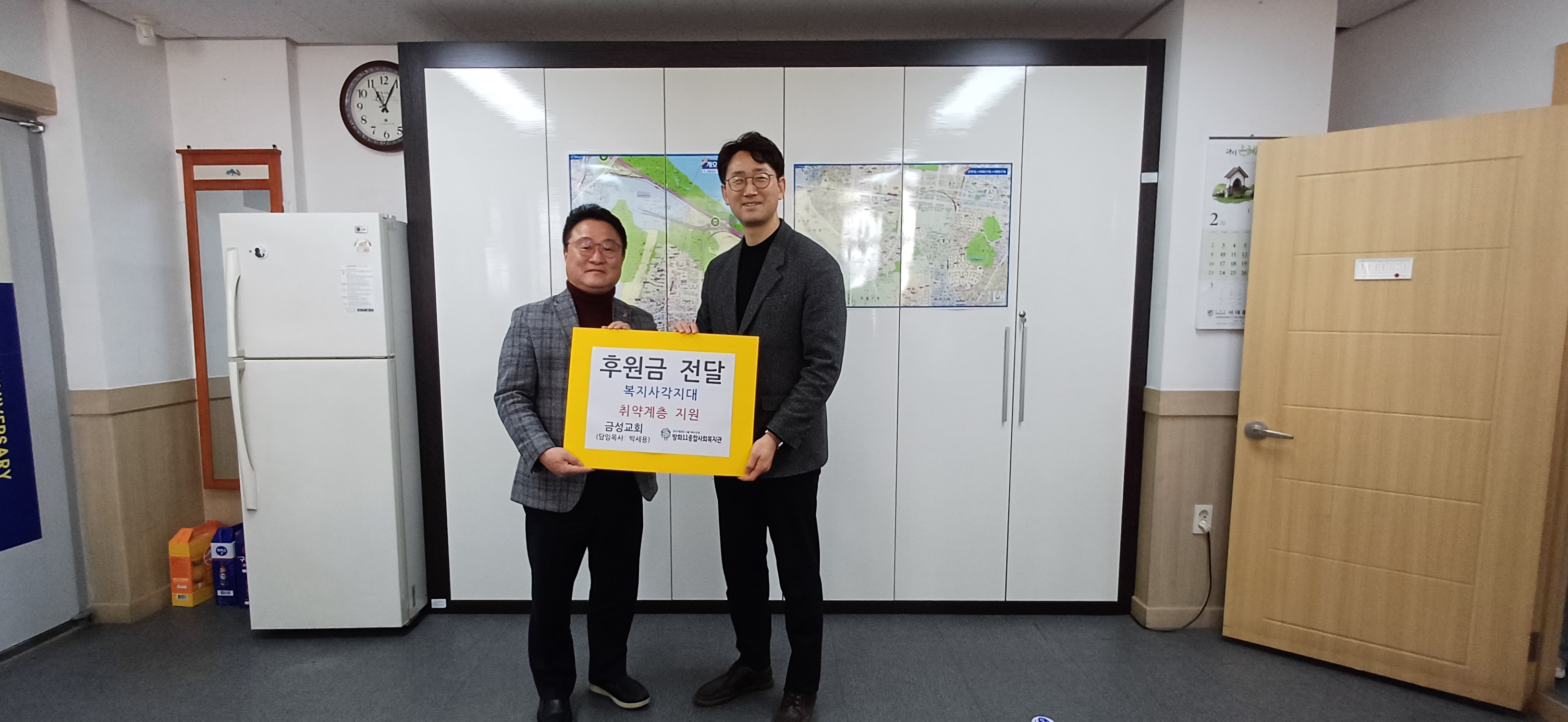 금성교회 박세용 담임목사님(우)께서 방화11종합사회복지관 권순범 관장(좌)께 후원금 전달