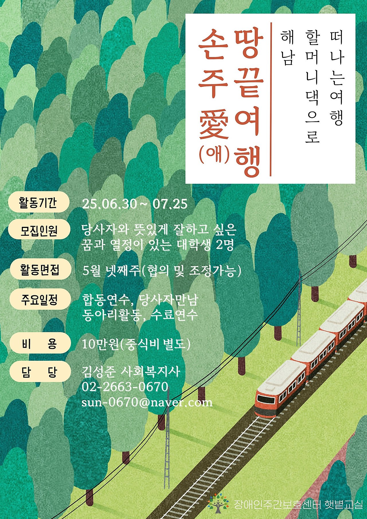 2025년 여름 장애인주간보호센터 햇볕교실 단기사회사업 실습생 모집