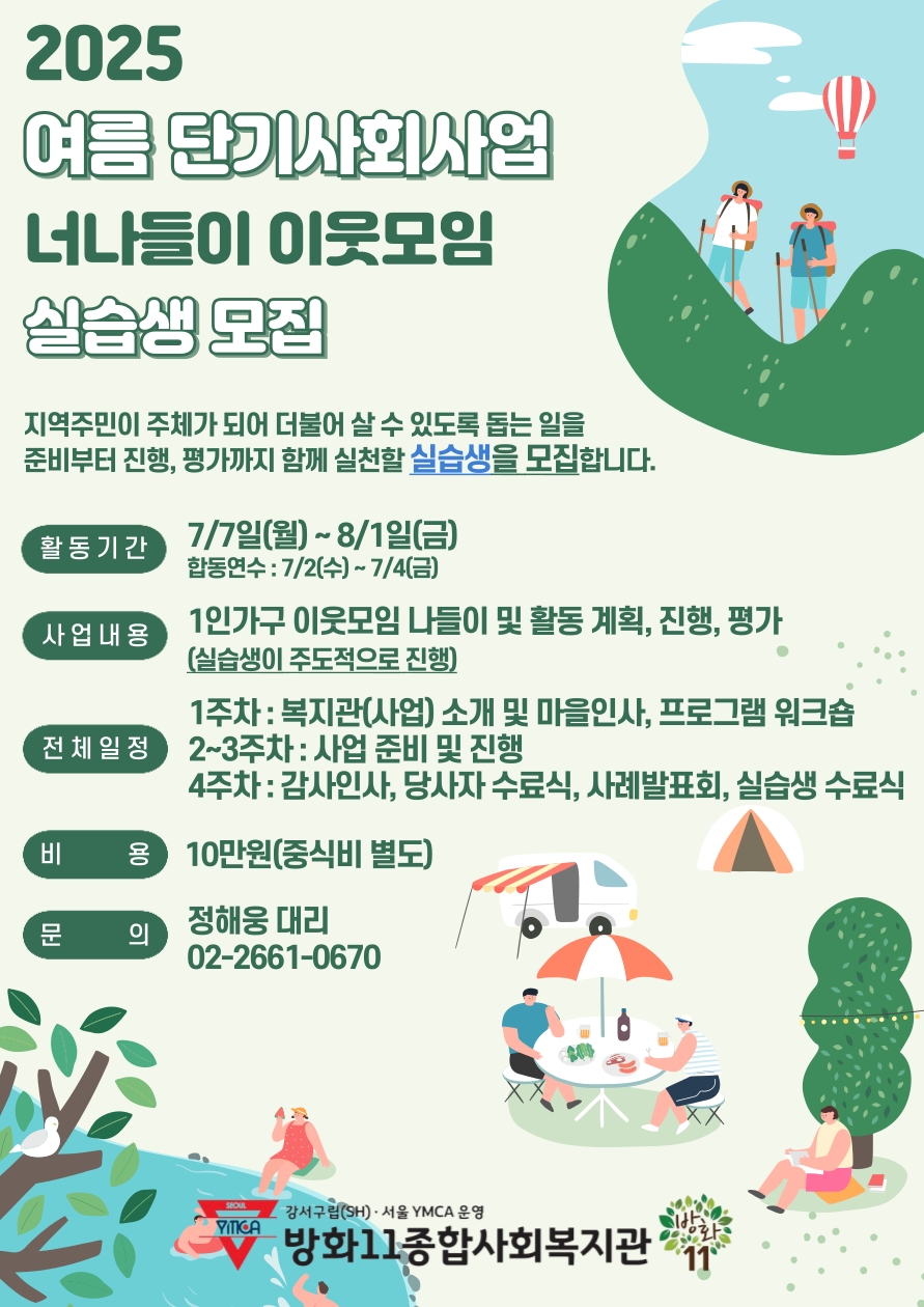 방화11종합사회복지관 2025년 여름 단기사회사업 실습생 모집 안내