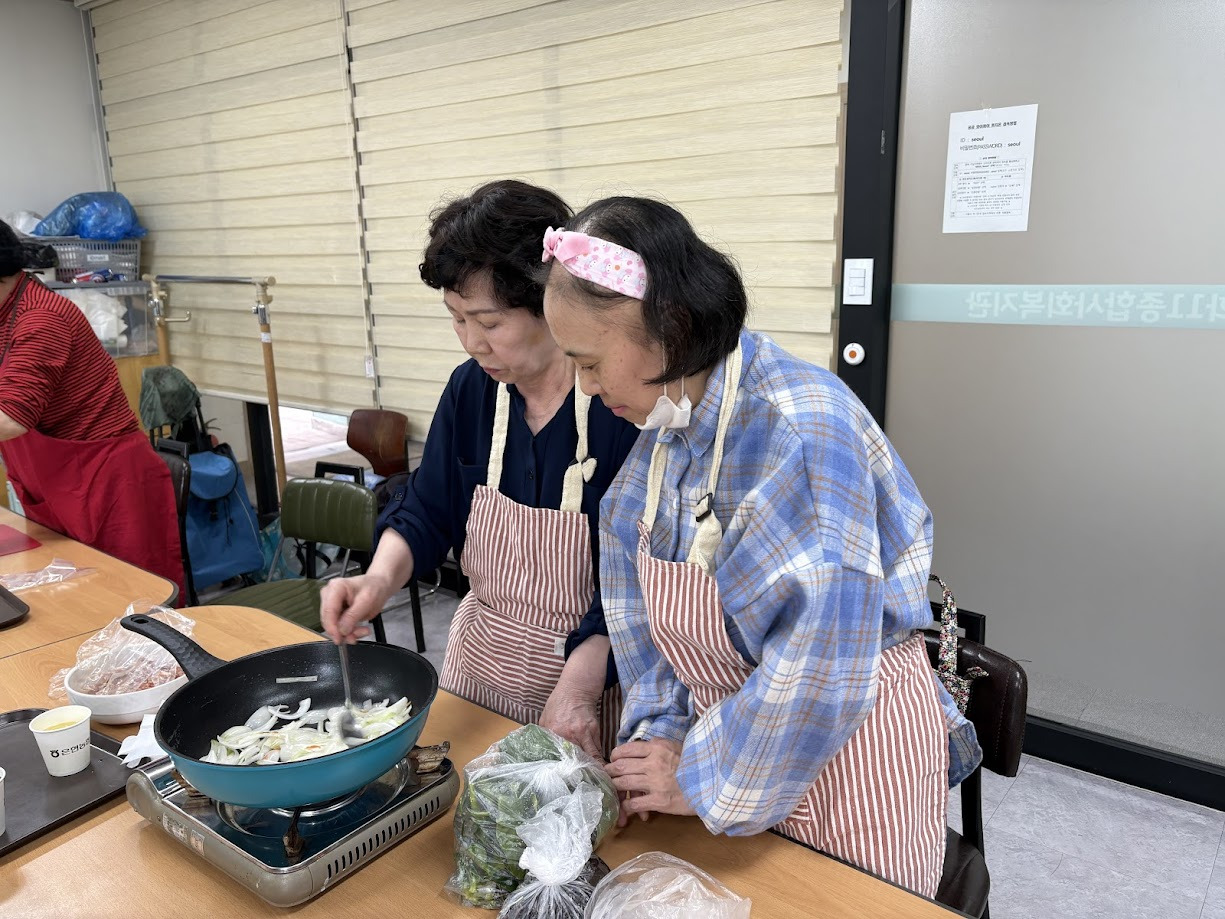 서로 역할을 나누어 가며 즐겁게 잡채를 만드셨습니다.