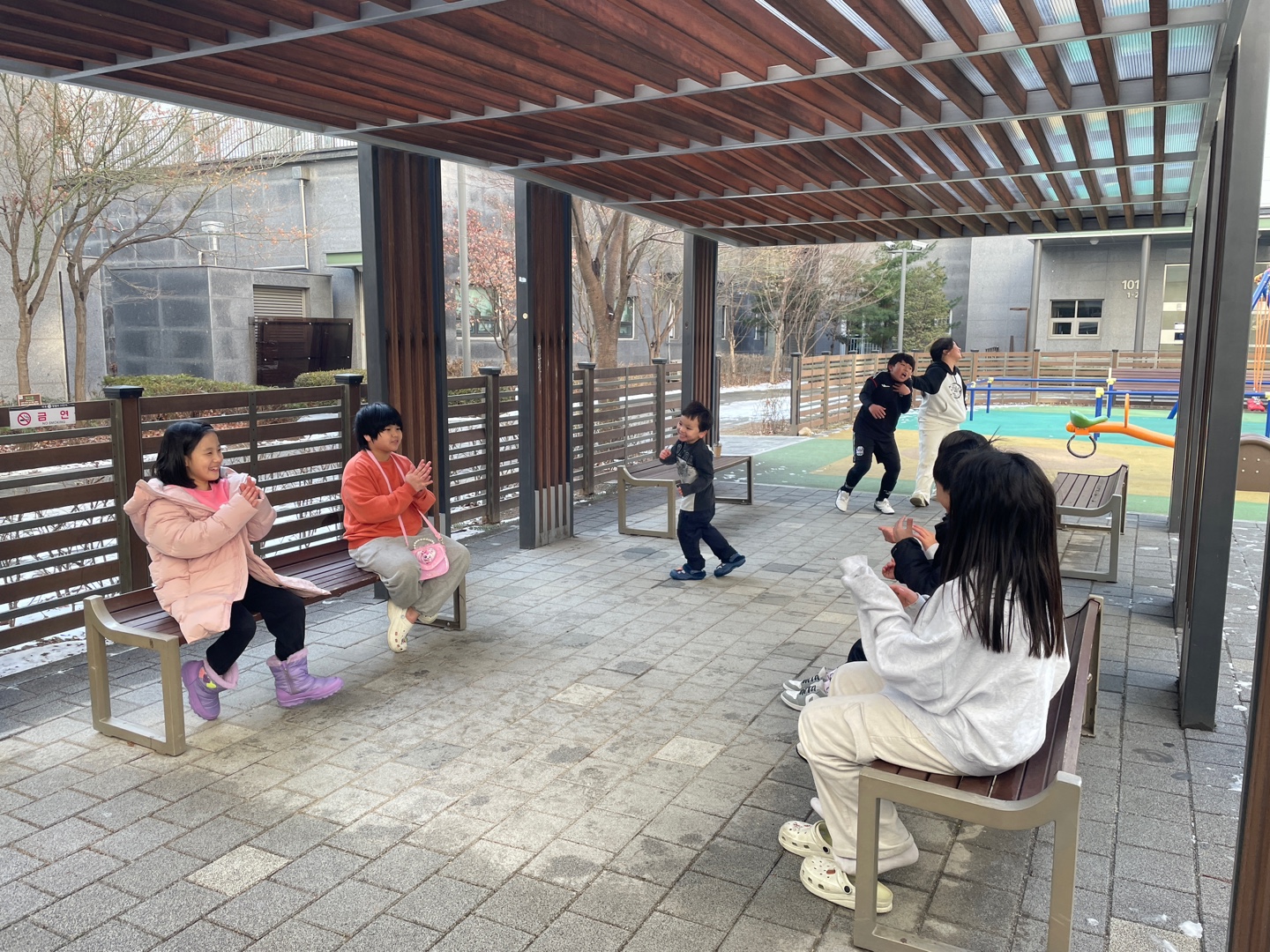 단지 내에 아이들이 웃고 뛰어노는 소리가 가득 퍼졌습니다.