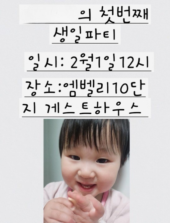영하의 첫 생일을 축하하기 위해 동네친구들 모임 참여 가족들과 아이들 친구들까지 약 30명이 모였습니다.