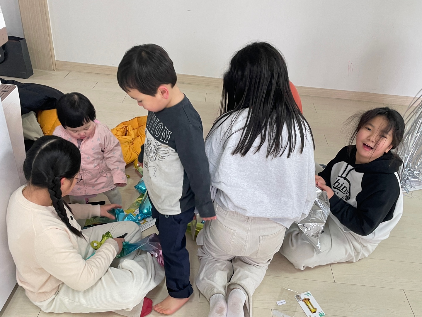 아이들이 직접 풍선도 불고 가랜드도 붙였습니다.