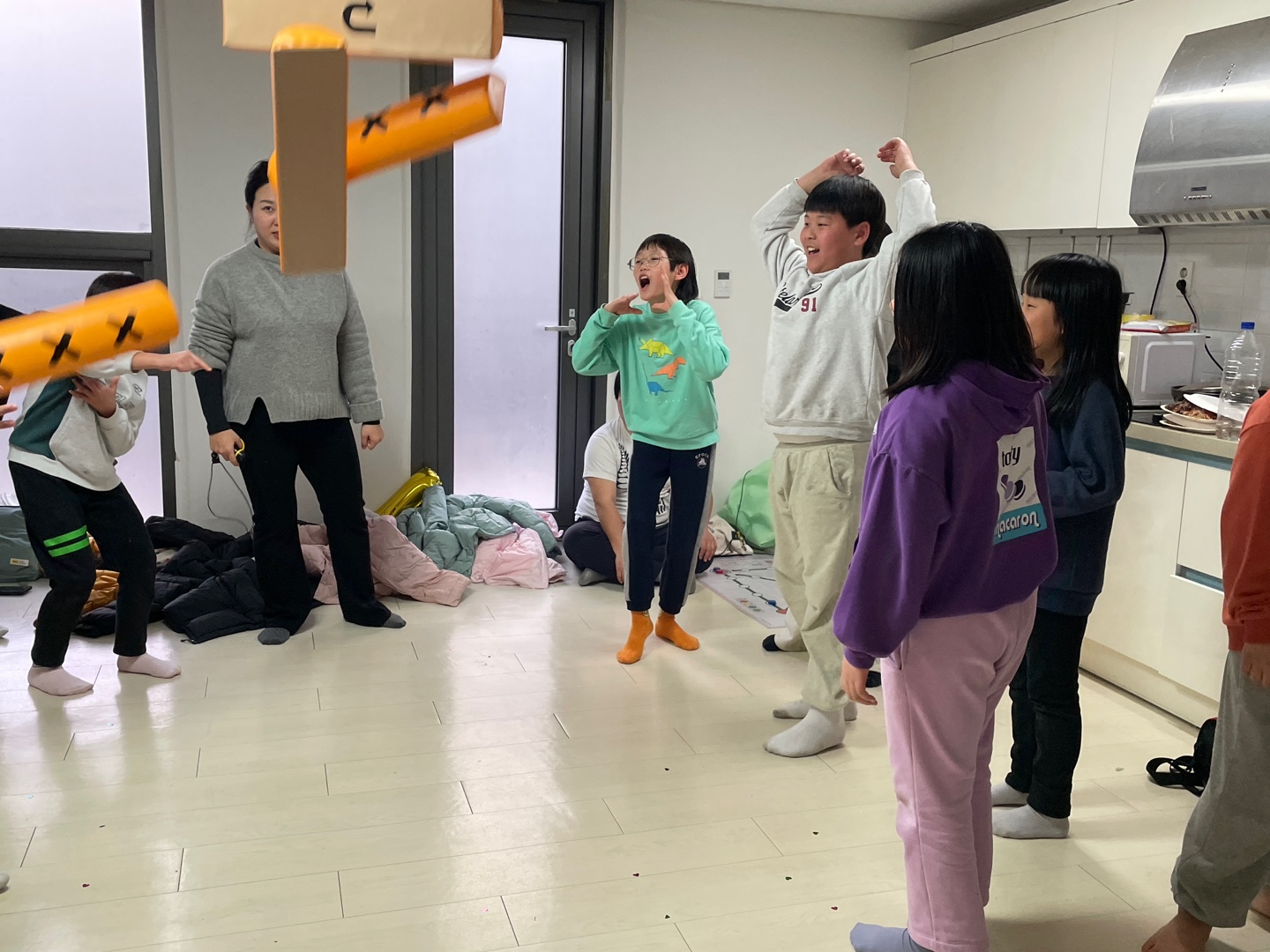 게스트 하우스 안에서 팀 대항으로 전래놀이했습니다.