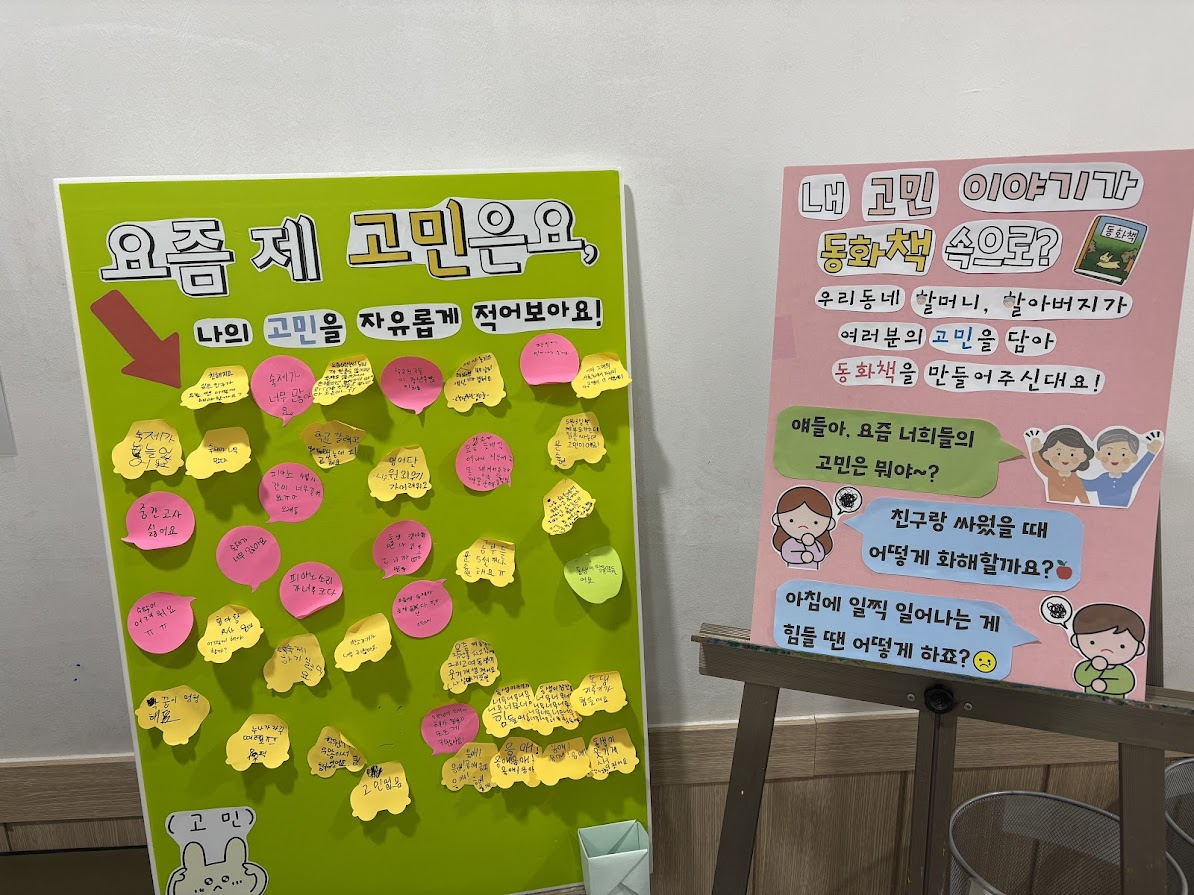 누구나 작가 사업에 참여하기로 한 어르신 작가님들도 복지관을 오며 가며 아이들의 고민을 살펴보셨다고 합니다.