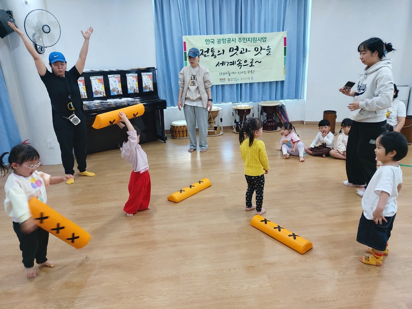 공항동에 있는 공항어린이집에서 4세에서 7세 원아 50여 명을 대상으로 전래놀이 활동했습니다.