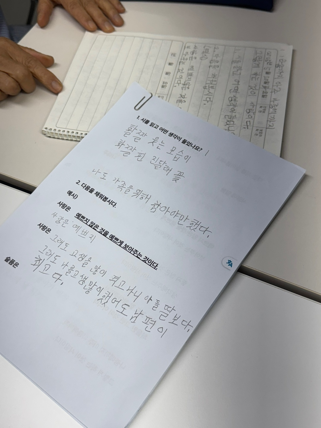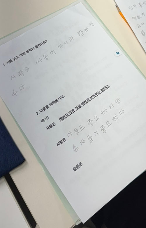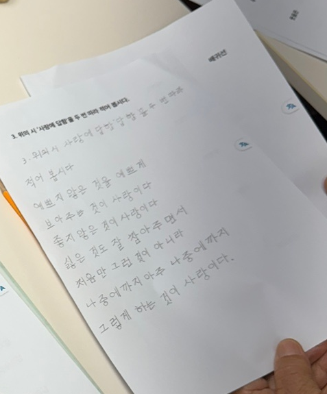 어르신들께서는 시를 또박또박 필사하시며 집중하는 모습을 보여주셨습니다.