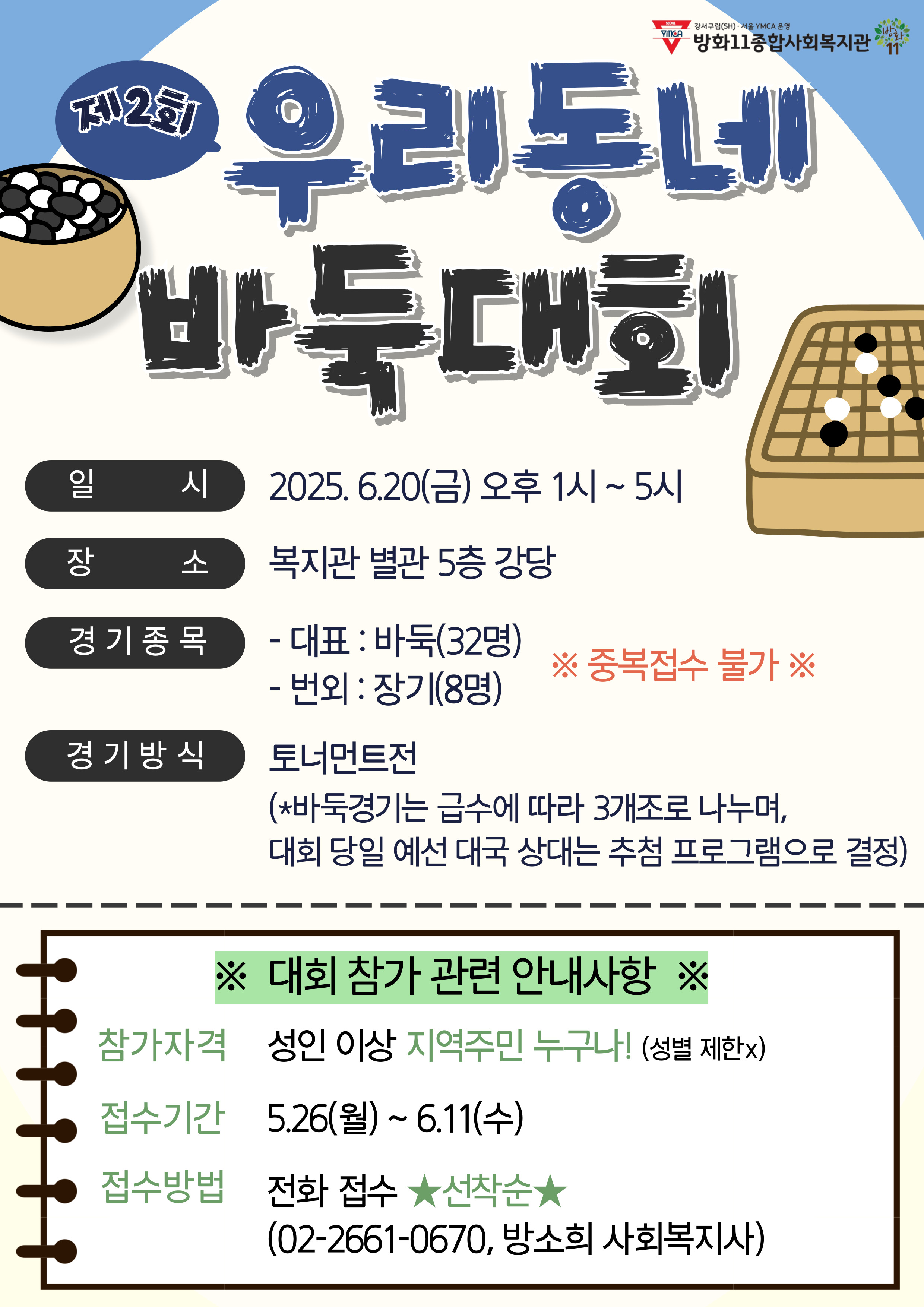 1. 바둑대회 일시 : 2025년 6월 20일(금) 오후 1시~5시