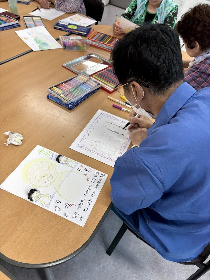 시간이 흘러 예전 일은 기억나지 않는다고 하셨지만 저마다의 이야기와 개성이 담긴 그림들로 흰 종이가 가득 채워졌습니다.