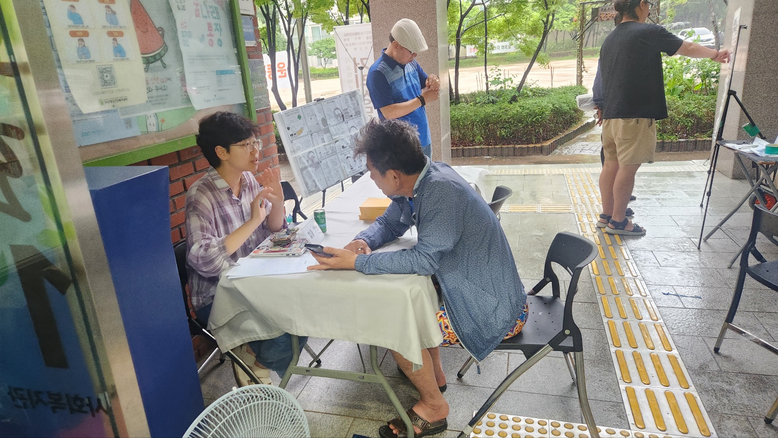 상담 당일에는 예상치 못한 큰 비로 인해 복지관 1층 로비로 장소를 변경하여 진행하게 되었습니다.