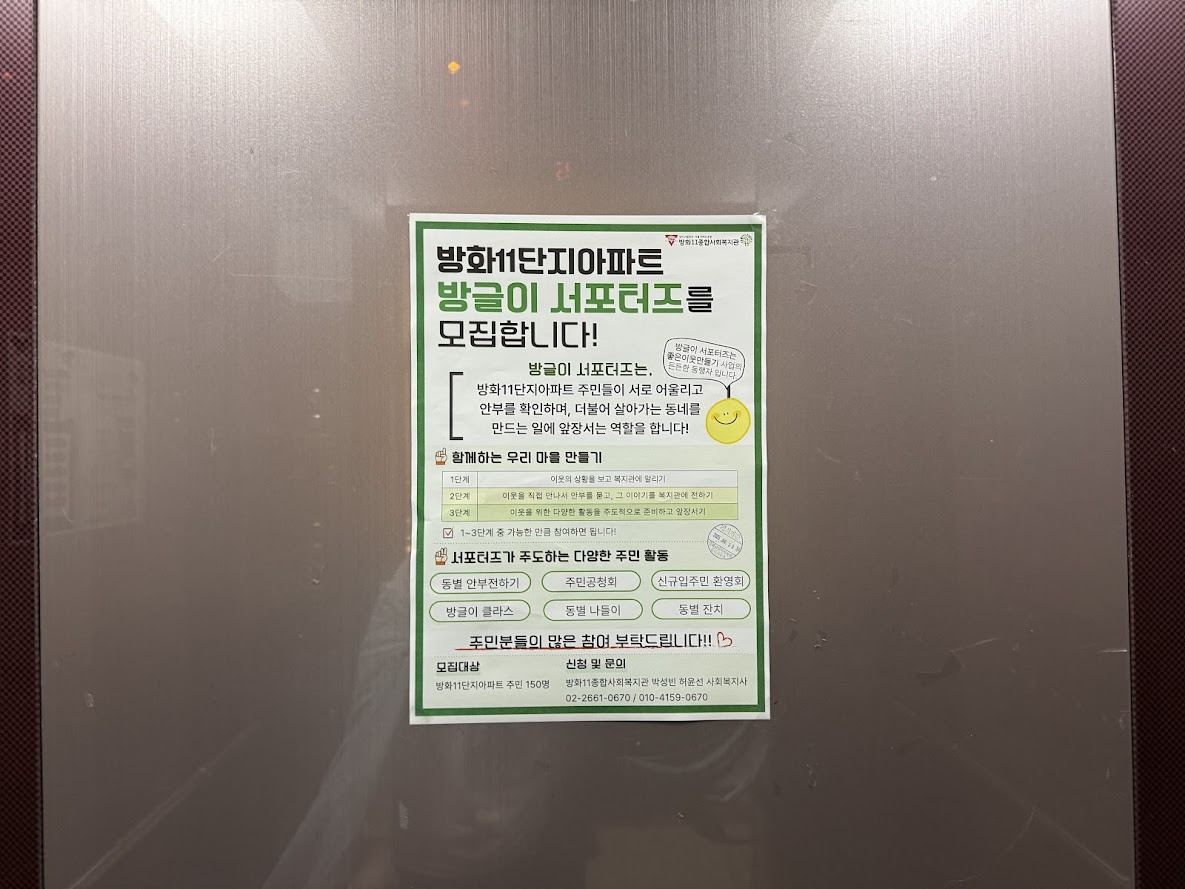 복지관과 단지 내에 홍보지를 붙이는 중입니다!