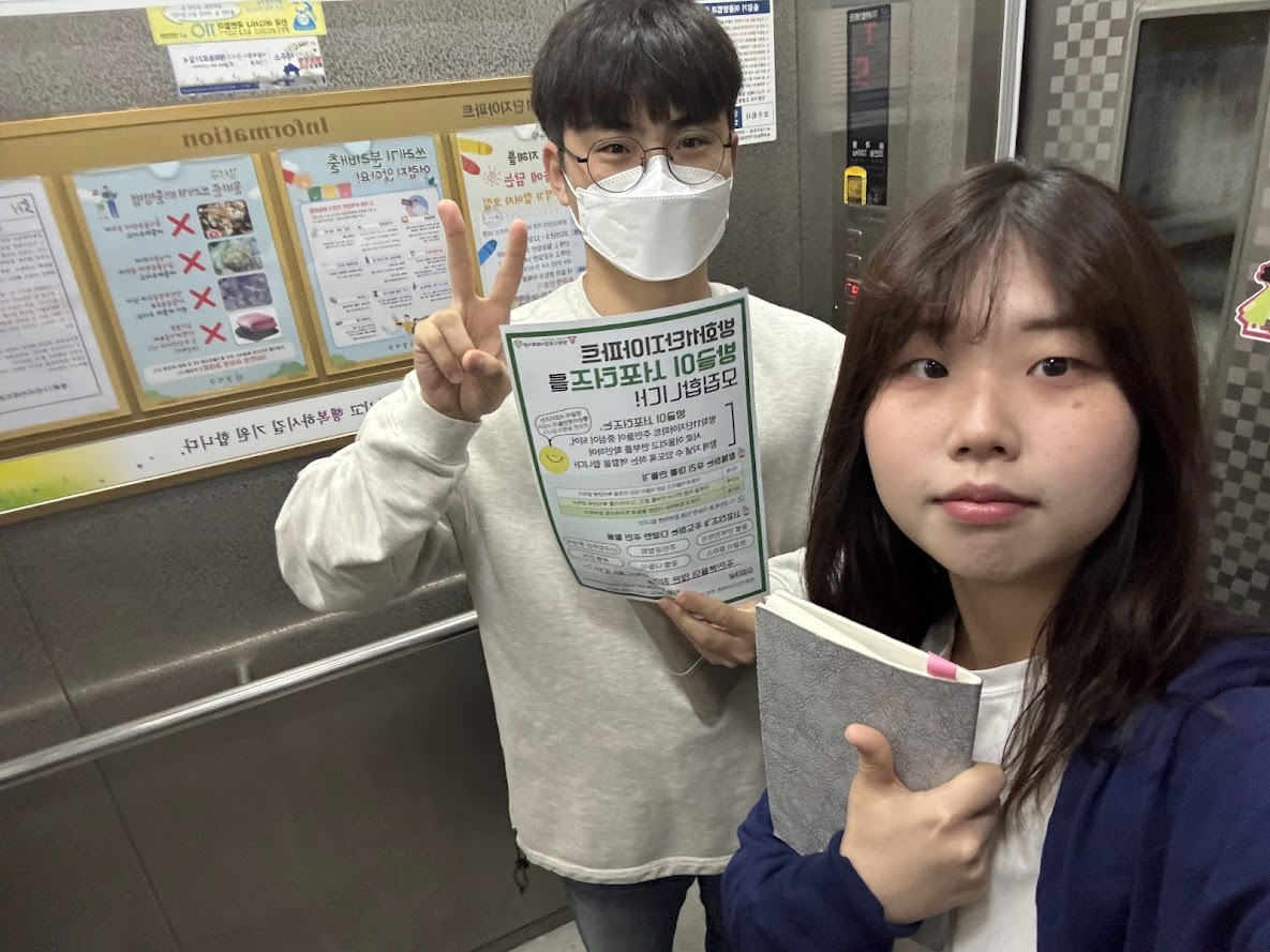 방글이 서포터즈 모집 안내 홍보지를 부착하며 활동을 시작했습니다.