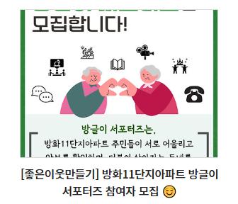 방글이 서포터즈는 방화11단지아파트 주민들께서