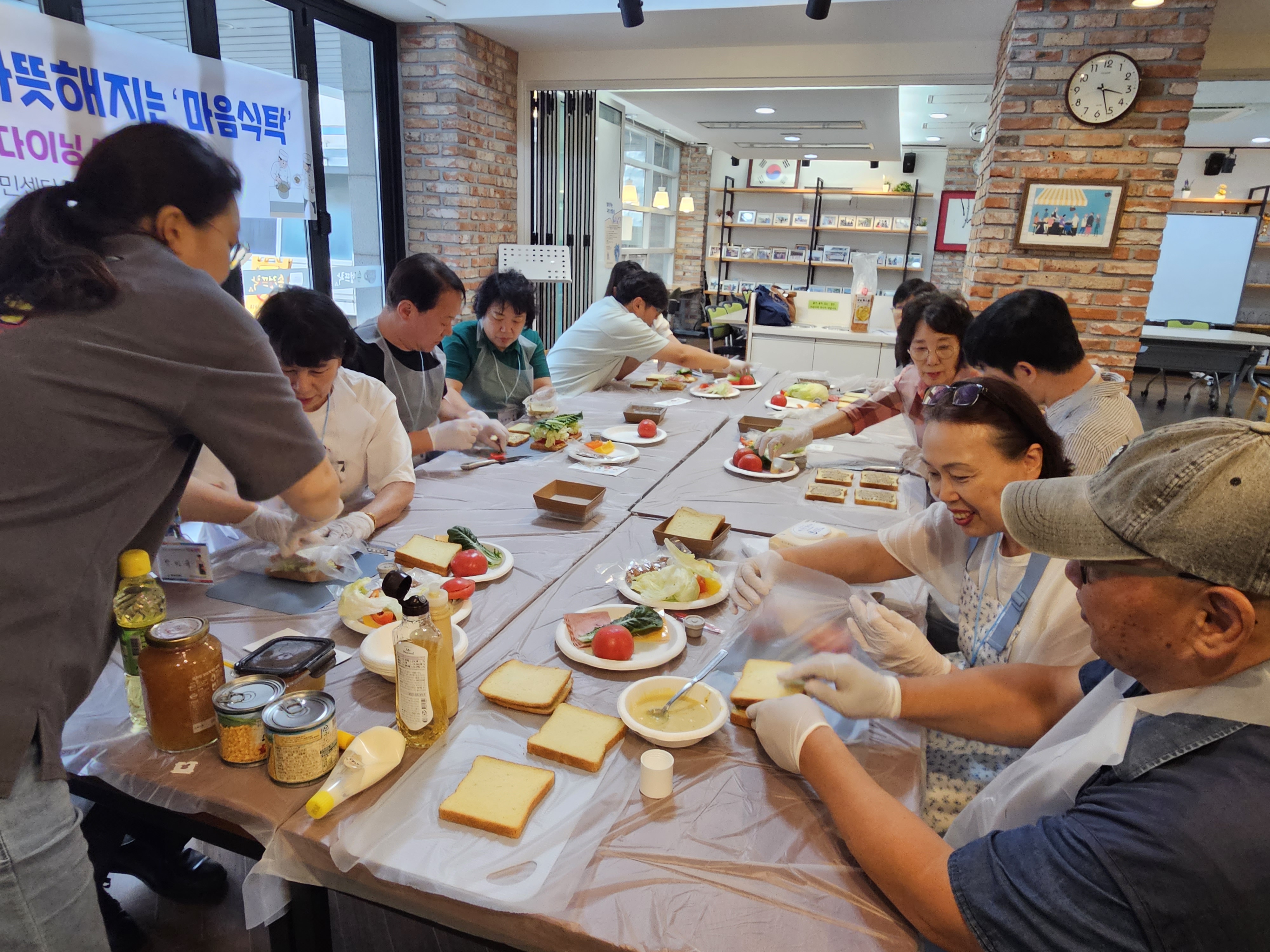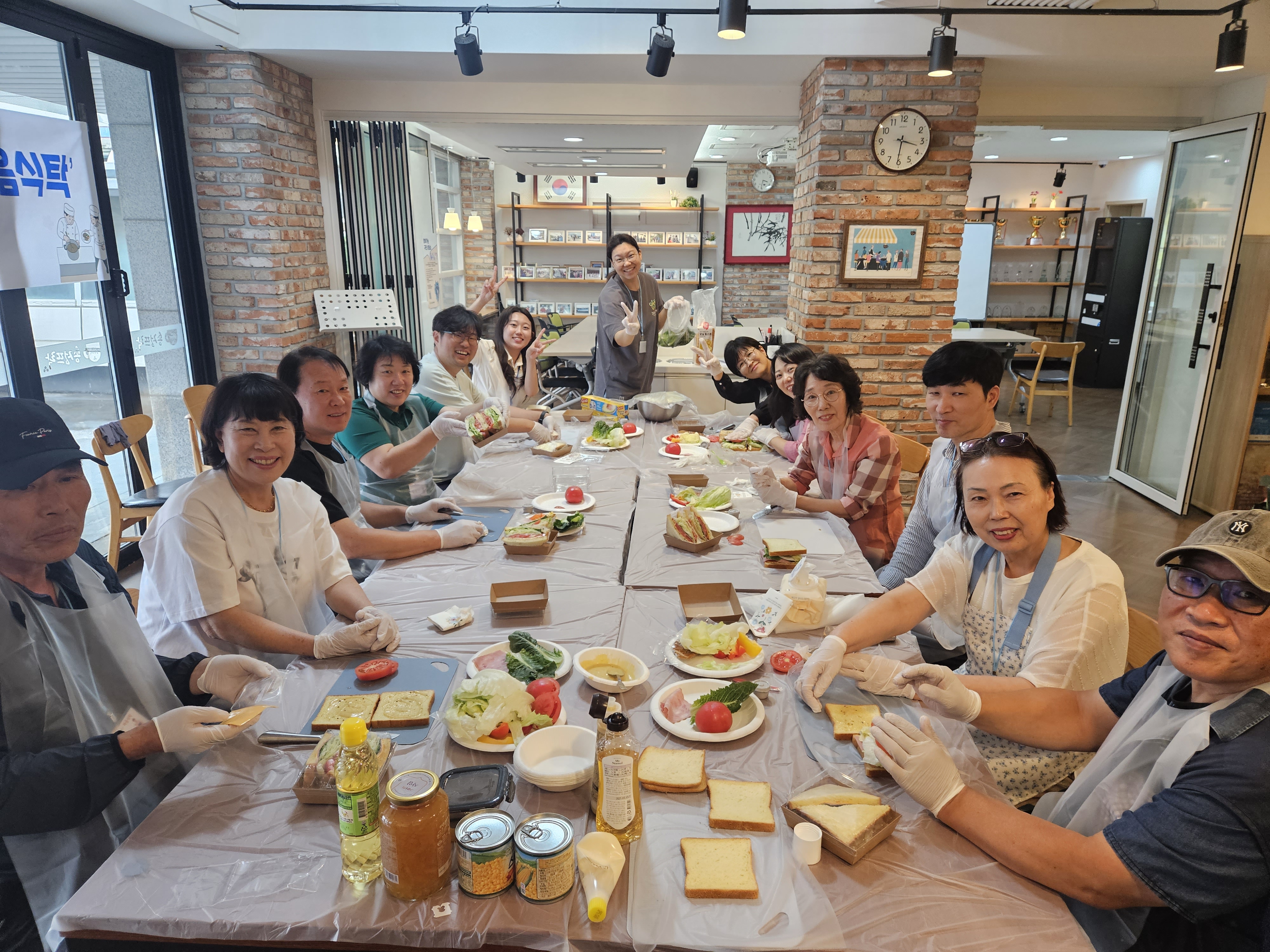 특히, 협력주민분께서 이번 모임을 위해 직접 준비해오신 특제 소스 덕분에 음식의 완성도가 한층 더 높아졌습니다. 샌드위치와 샐러드를 먹으며 “이 소스 진짜 맛있다”는 이야기들이 오갔고, 모두가 만족스러운 표정으로 식사를 즐기셨습니다.