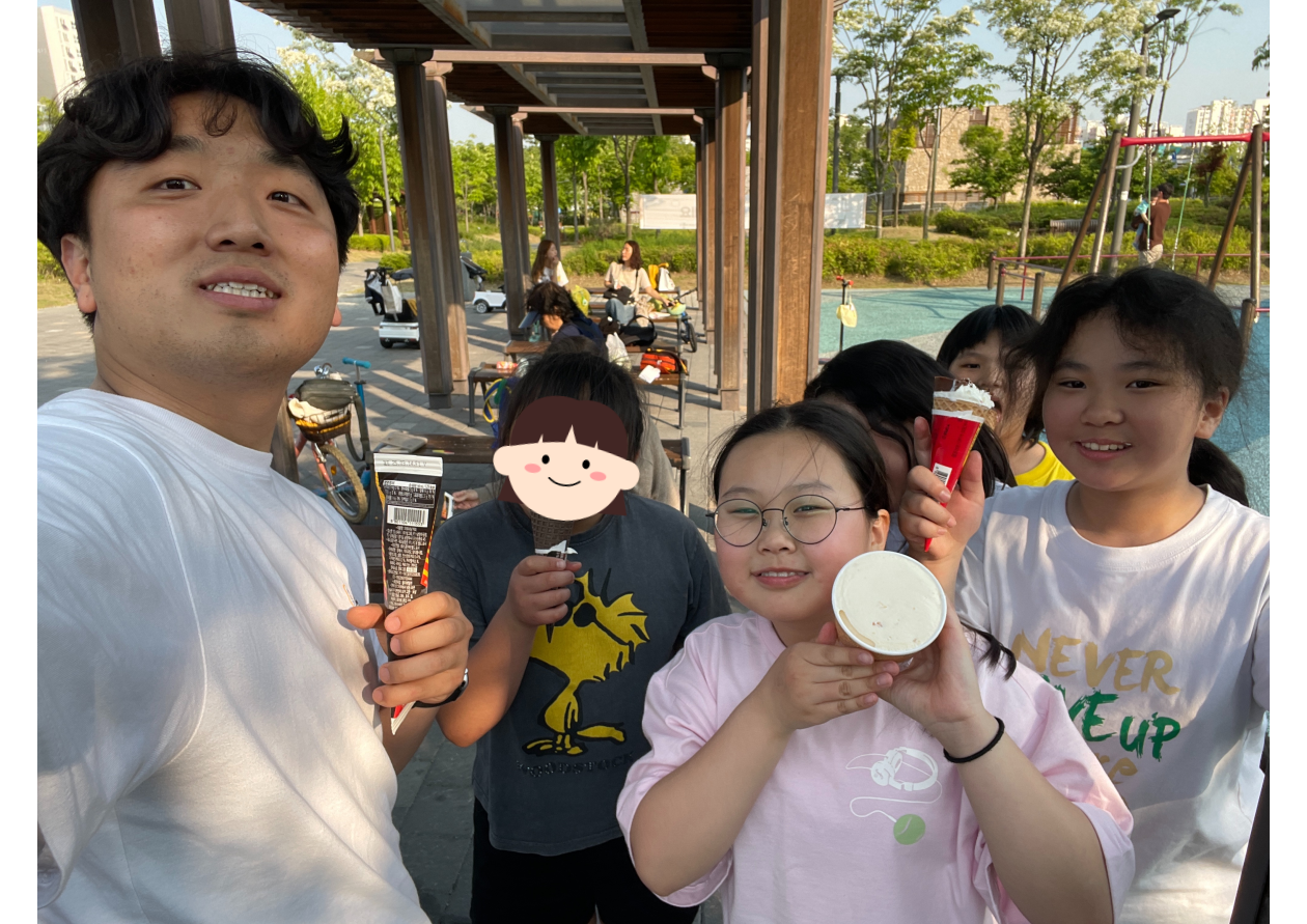 활동을 마친 후, 이상호 선생님께서 아이들에게 시원한 아이스크림을 사주셨습니다.