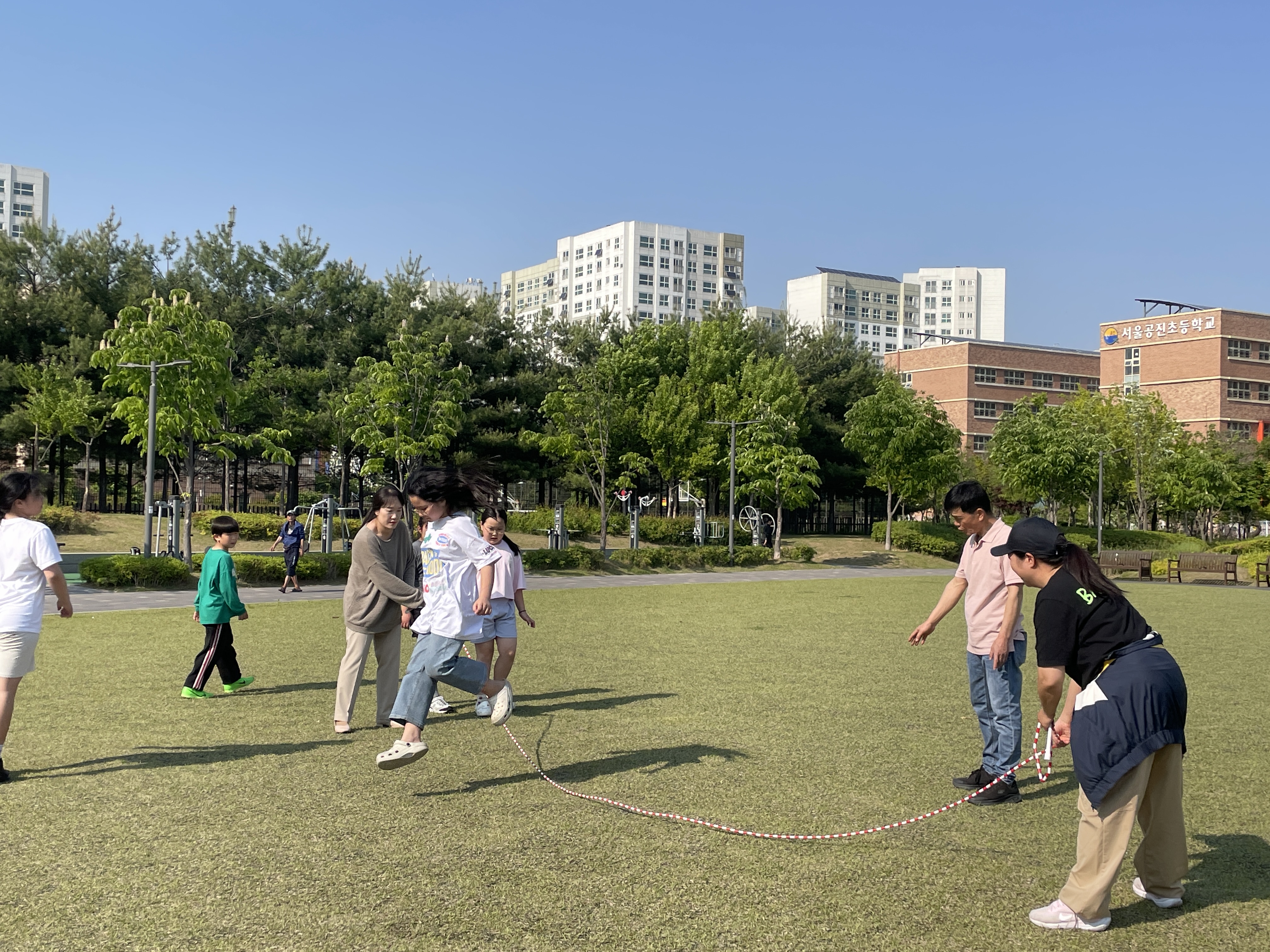 긴줄넘기는 노래에 맞춰 뛰는 놀이였습니다.