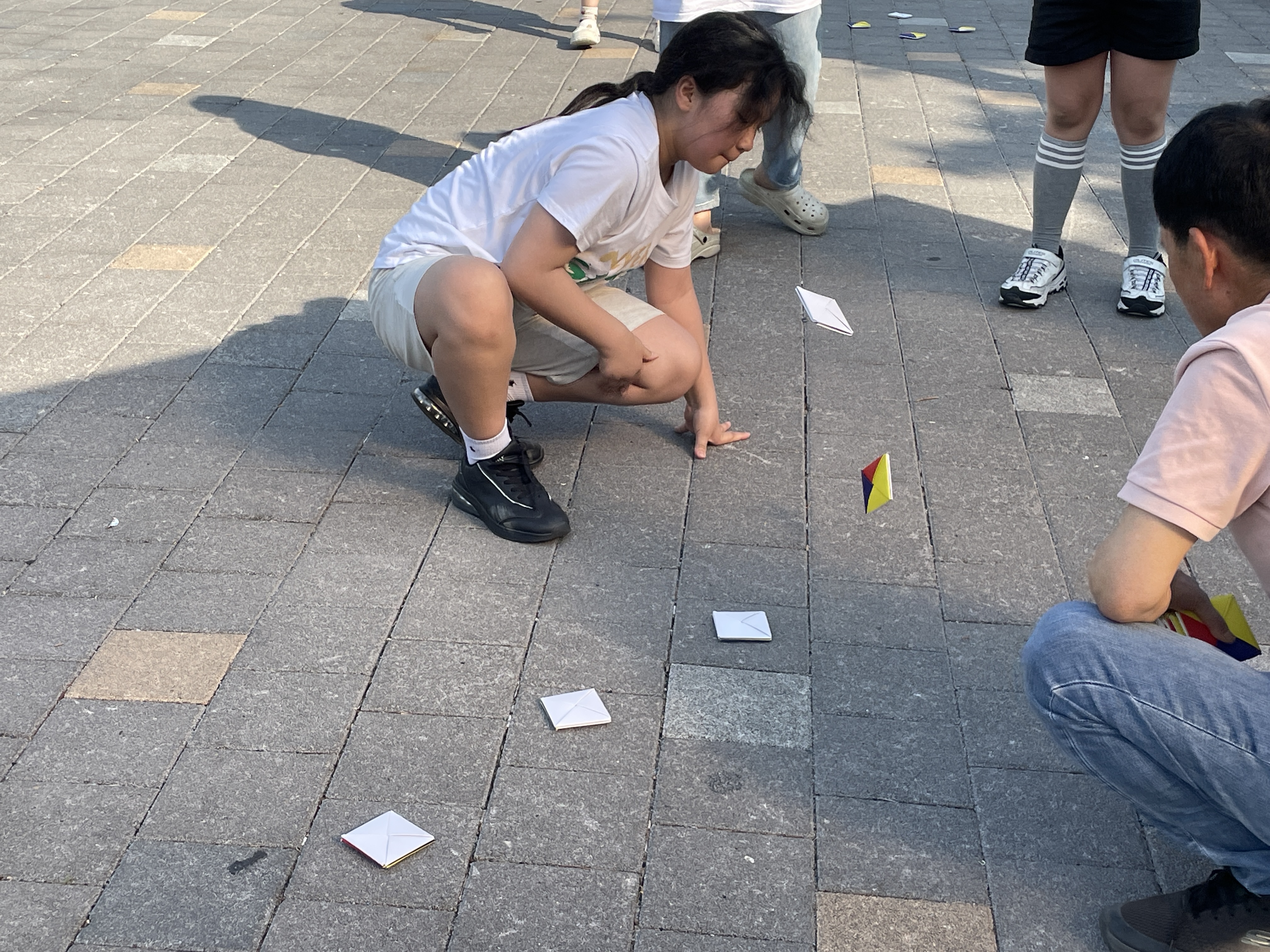 오늘 배운 놀이는 비석치기, 긴줄넘기, 딱지치기였습니다.