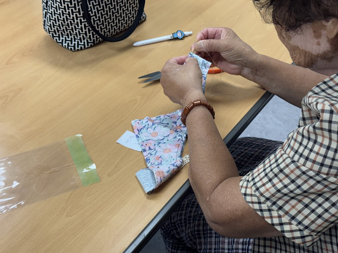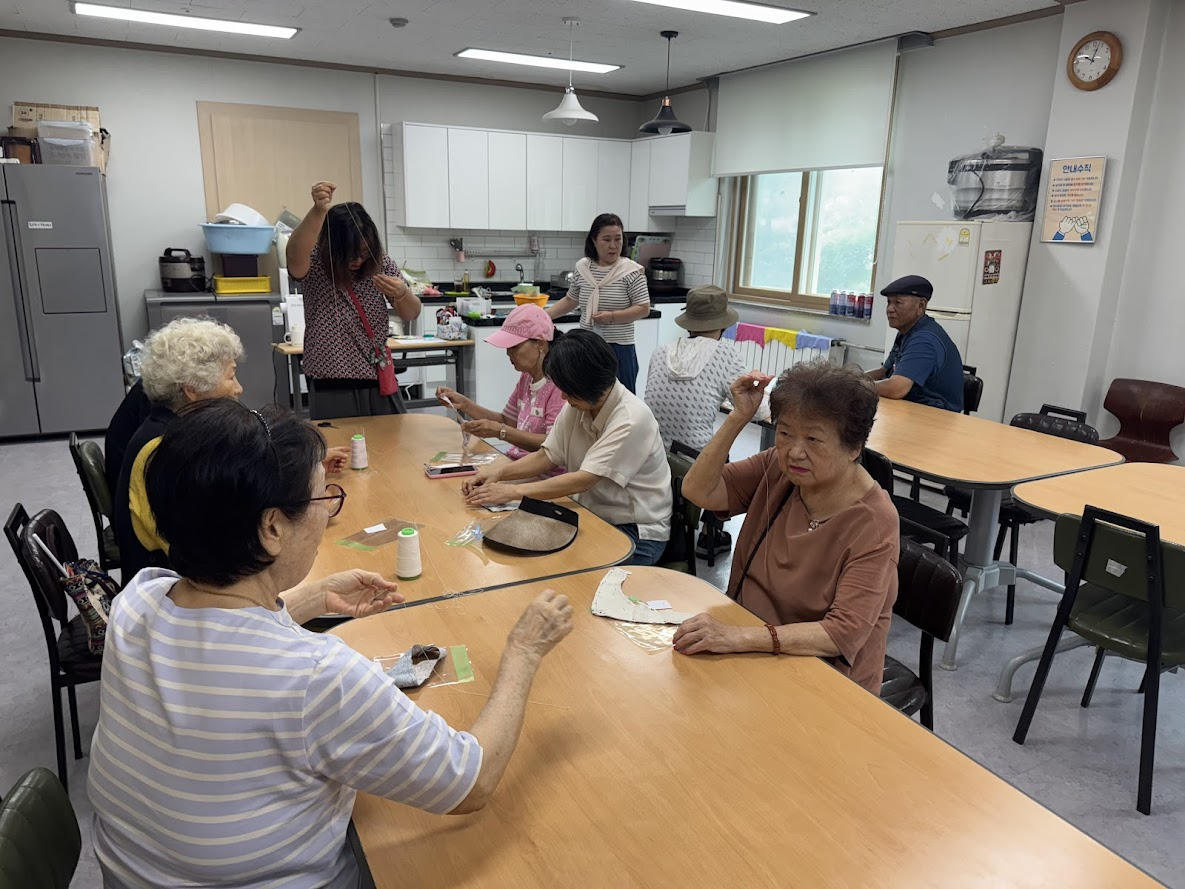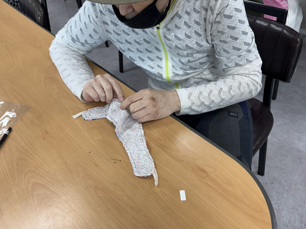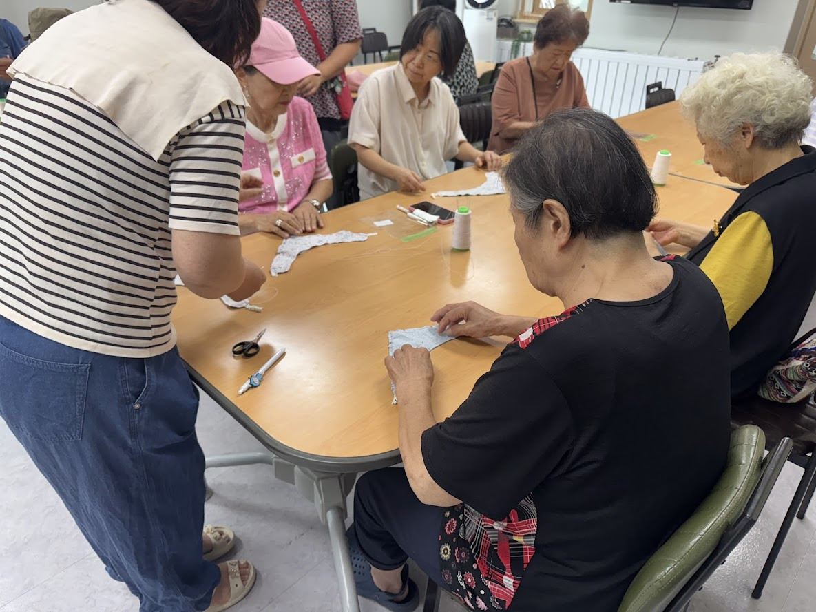 바느질을 잘하시는 분들이 서툰 분들께 다가가 많이 도와주셨습니다.