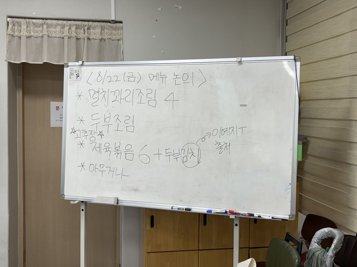 주민분들의 제안대로 투표를 하니 '제육볶음'이 가장 많이 나왔습니다.