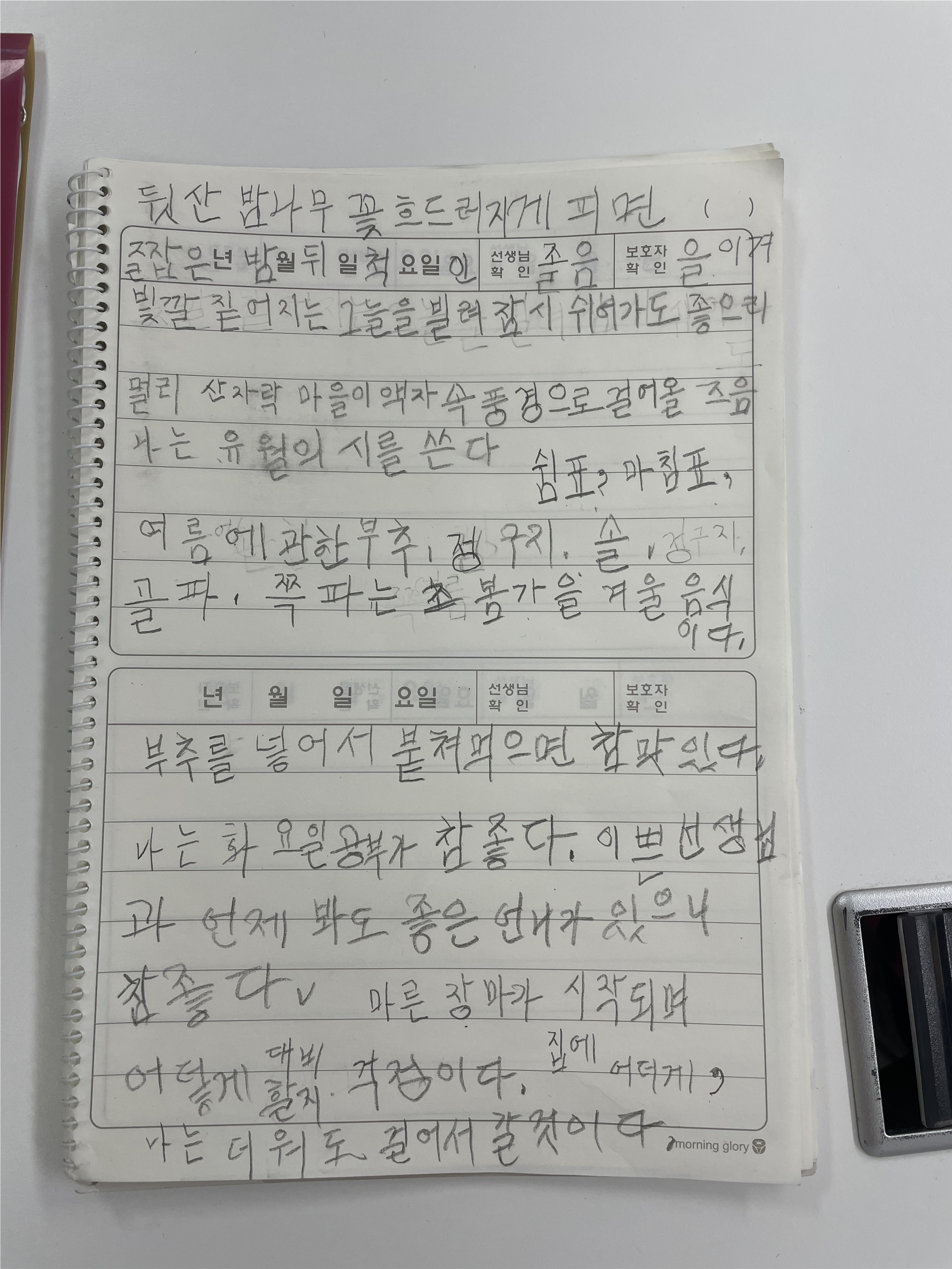 염 씨 어르신과 윤 씨 어르신께서는 2023년부터 일상글쓰기 모임에 참여하셨습니다. 당시 모임 이름은 ‘한글 배우기’ 모임이었으며, 그때부터 꾸준히 참여하시면서 모임에 대한 애정이 더 높으실 겁니다. 내년에도 이 모임이 지속되기를 바라고 계십니다. 어르신들이 글로 직접 표현하지 못한 진심을 사회사업가가 느끼고, 실천기록에 잘 담아낼 수 있도록 노력하겠습니다.