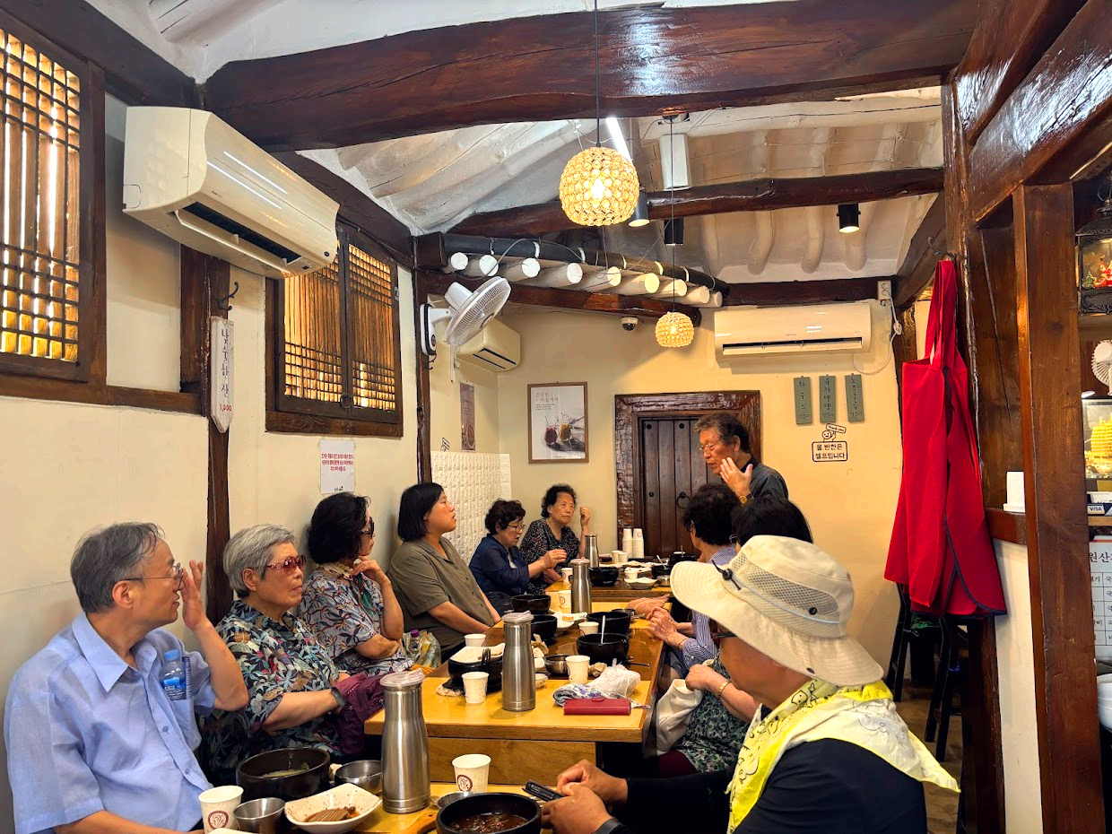 청와대 구경을 마친 뒤에는 근처 식당으로 이동해 함께 맛있는 시래기국을 먹었습니다. 식사하고 난 다음에는 맨발의청춘 회장님이신 이 씨 어르신께서 우리 모임에 대해 소개해주셨습니다. 항상 우리 모임에서 회장 역할 잘 해주시는 이 씨 어르신께 고맙습니다. 어르신 덕분에 이웃을 초대해 다녀온 이번 나들이도 즐겁게 다녀올 수 있었습니다.