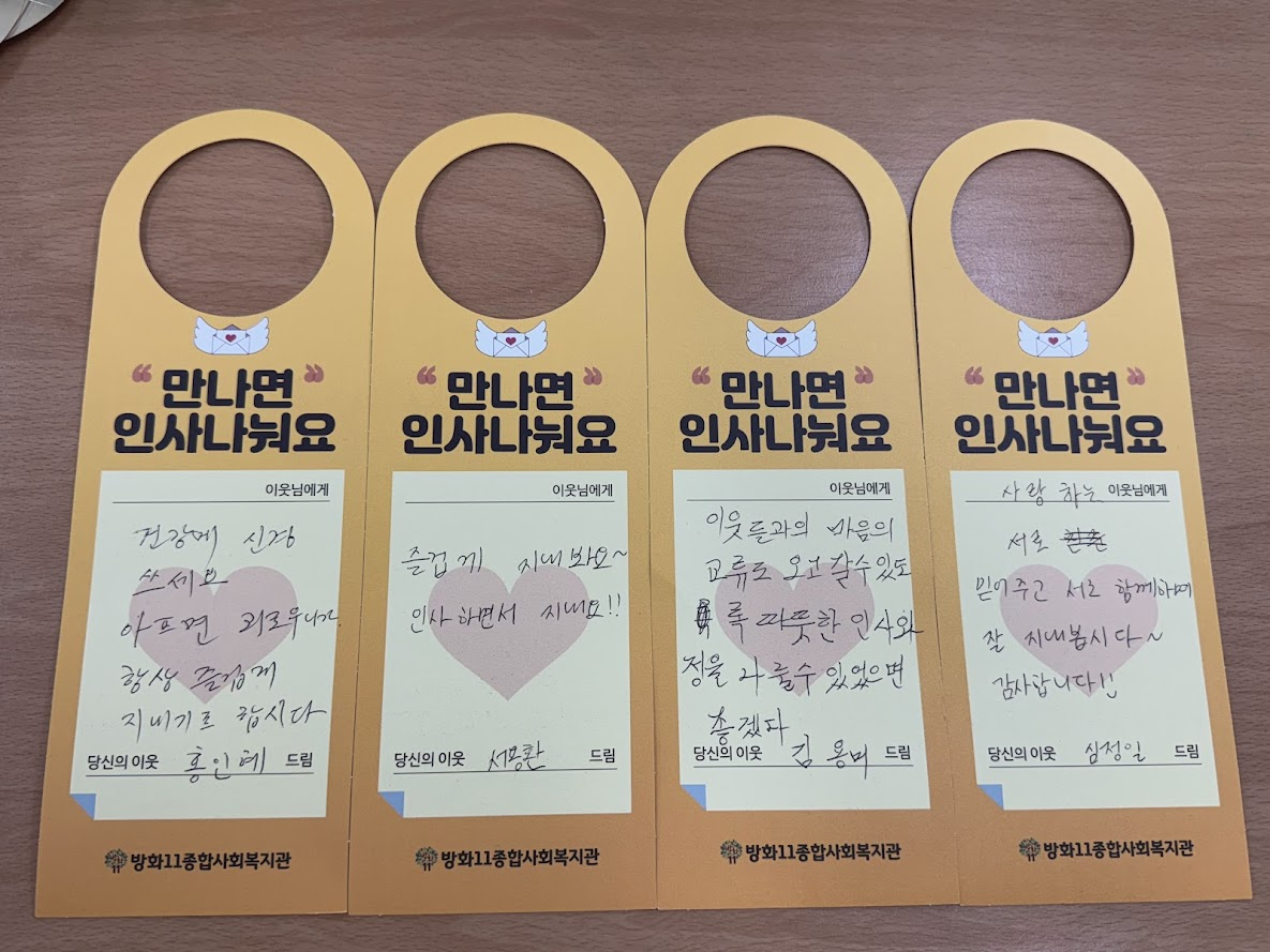 “이웃들과 마음이 오고 갈 수 있도록 따뜻한 인사와 정을 나눌 수 있었으면 좋겠습니다.”