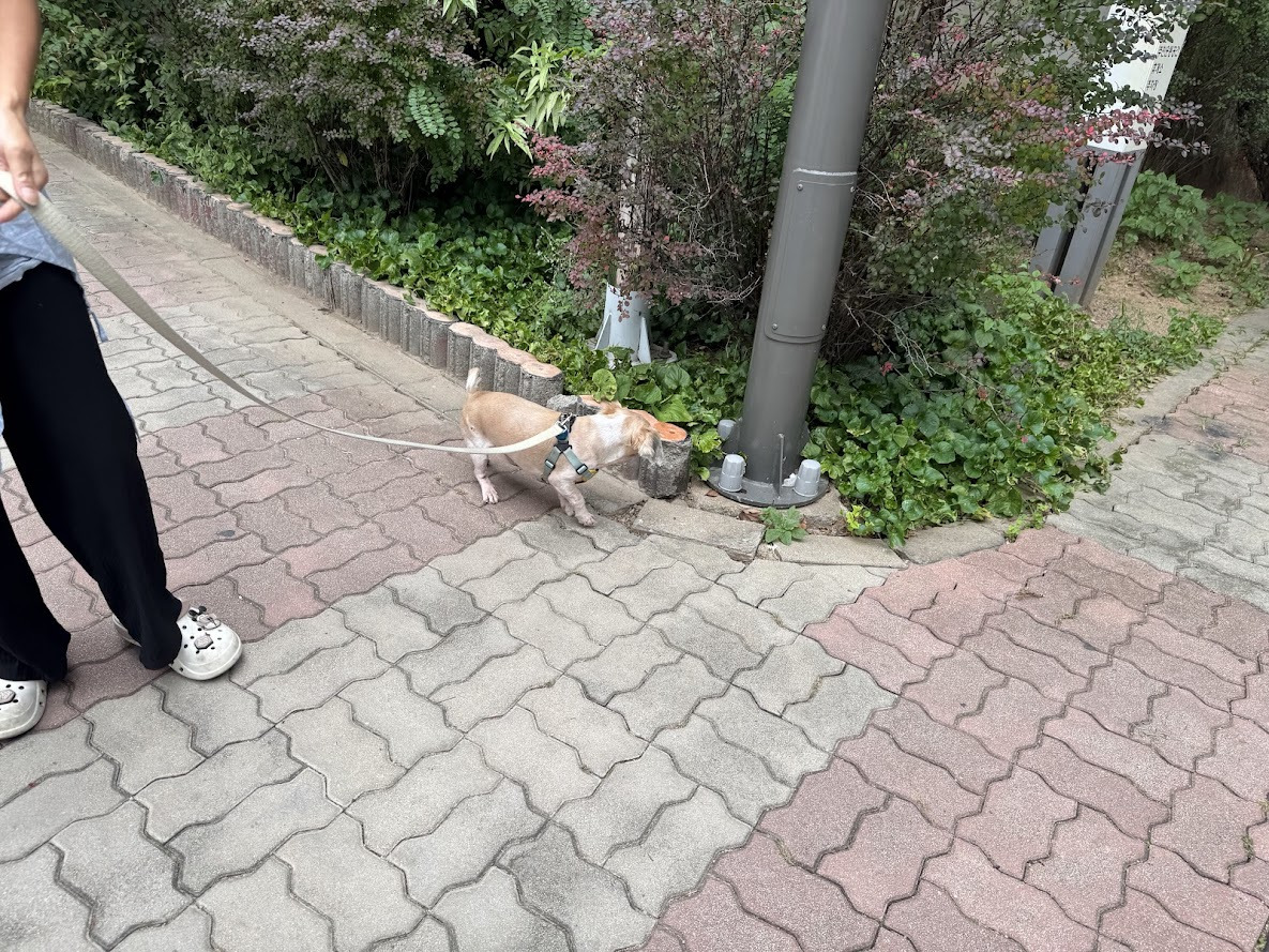 홍진경 님의 강아지 머루도 새로운 길을 와서 그런지 조금 더 신나게 걷는 것 같습니다.