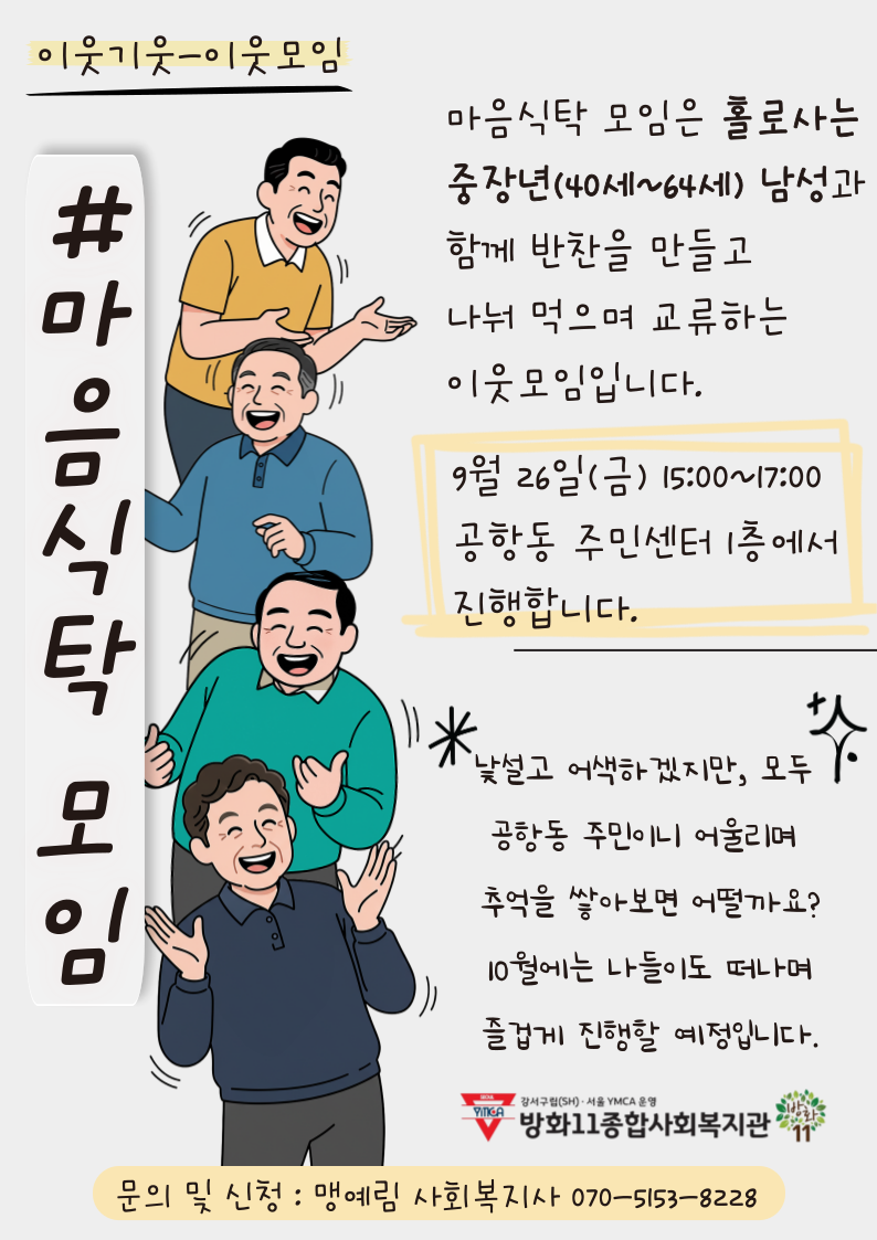 [2025 이웃기웃] 중장년 1인 남성가구 소셜다이닝 9월 마음식탁 모임