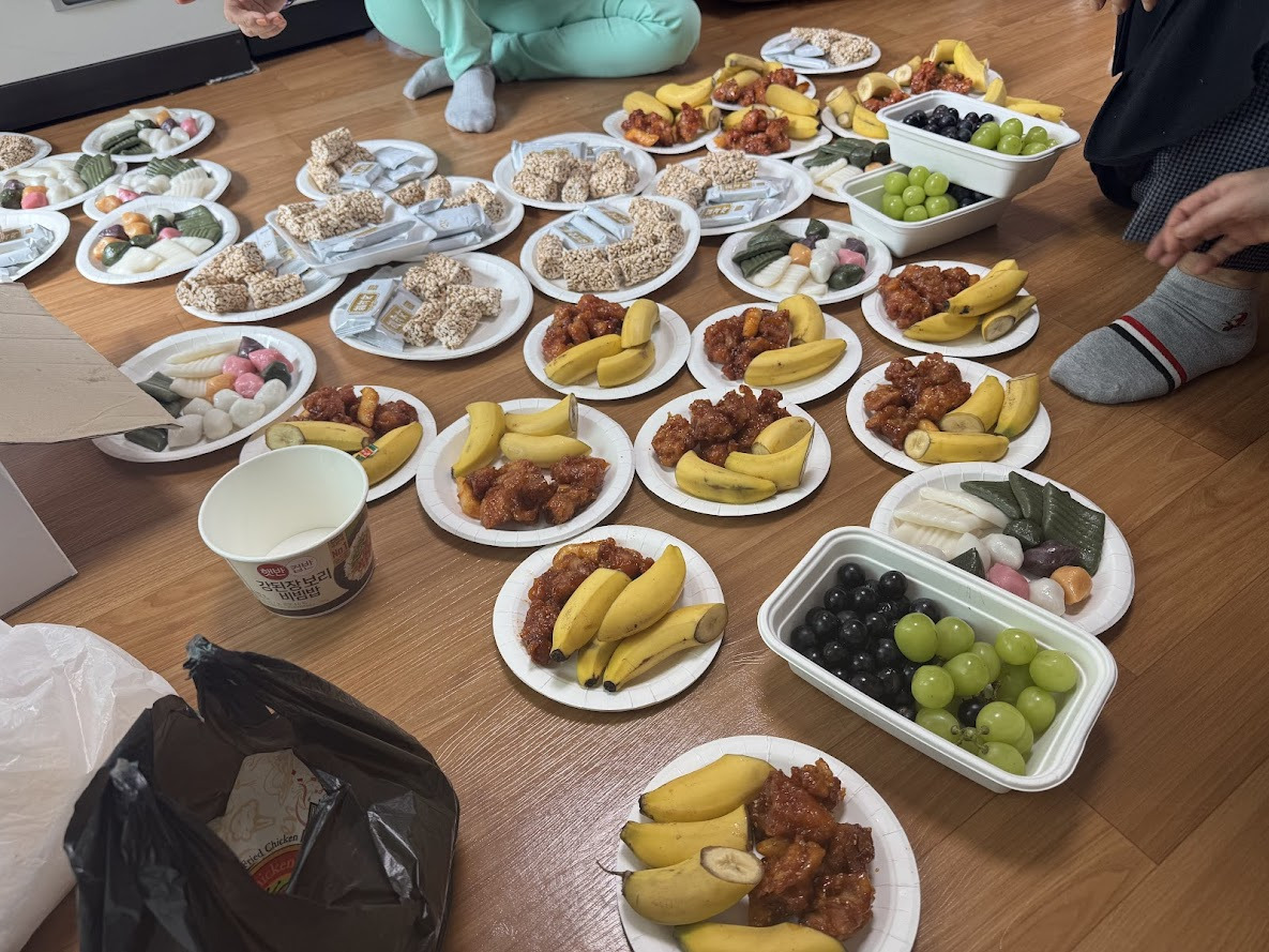 이번 잔치에는 주민분들께서 닭강정, 과일, 식혜 등 다양한 음식을 직접 준비해주셨습니다.