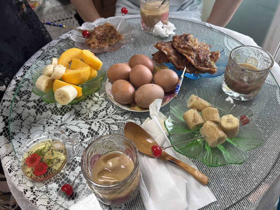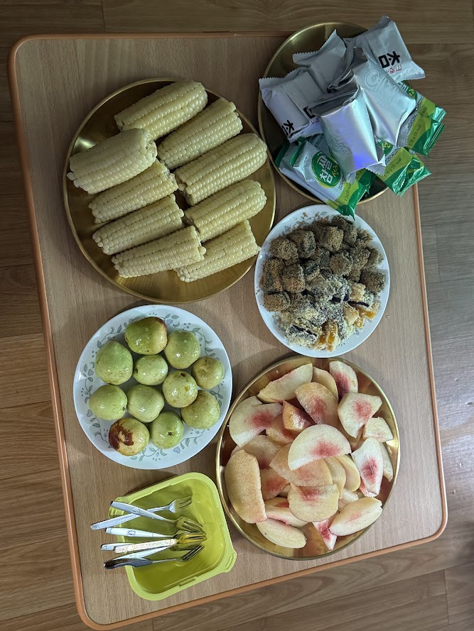 손수 김치전, 복숭아, 바나나 등 다양한 음식을 준비해주셨던 겁니다.