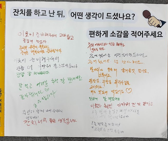 또한 잔치가 끝난 뒤에는 쓰레기 정리와 바닥 청소까지 함께해주셔서