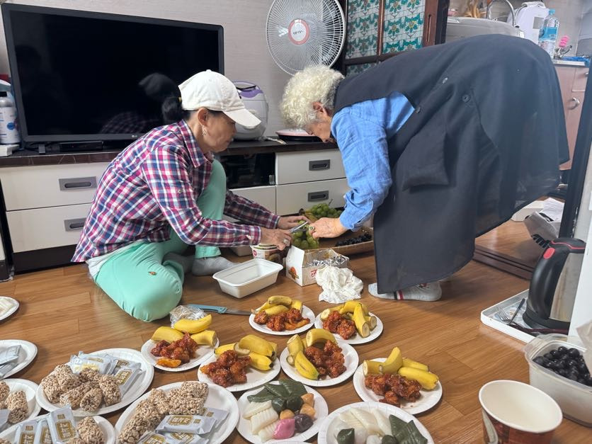 “저번엔 과자를 너무 많이 준비했더니 어르신들이 잘 안 드시더라고요. 이번엔 조금 줄이면 좋을 것 같아요.”