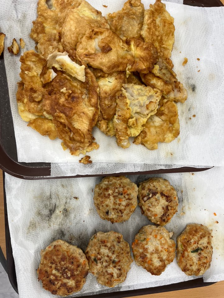 잡채를 완성하고, 동태전과 동그랑땡을 만들기 시작했습니다.