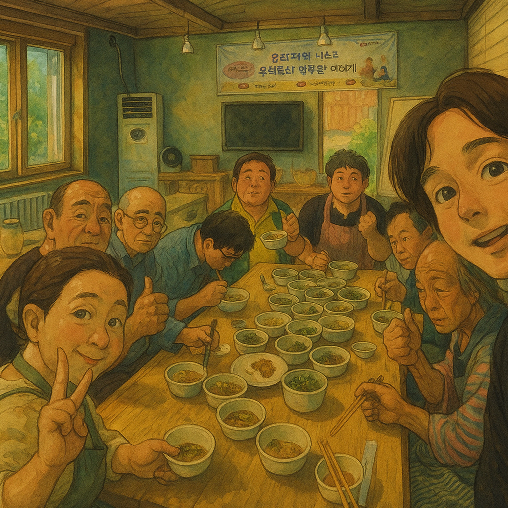 옆자리에 앉은 주민들은 그 모습을 볼 때마다 감탄하며, “진짜 쉐프 같아요!”라는 칭찬을 건넸습니다.