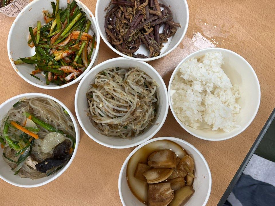 그리고 요리선생님이 뚝딱 솜씨를 발휘해 만들어주신 각종 나물도 접시에 담았습니다.