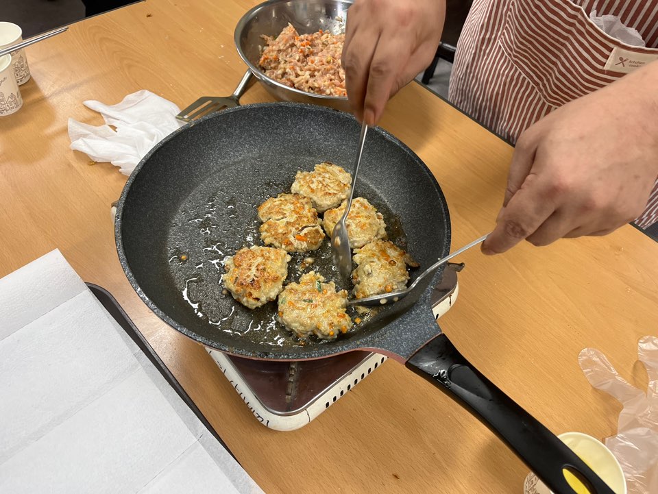 “이게 생각보다 쉽지 않네요.”라며 난감한 표정을 지었지만, 서로 격려하고 지지하며 동그랑땡을 모두 완성하였습니다.