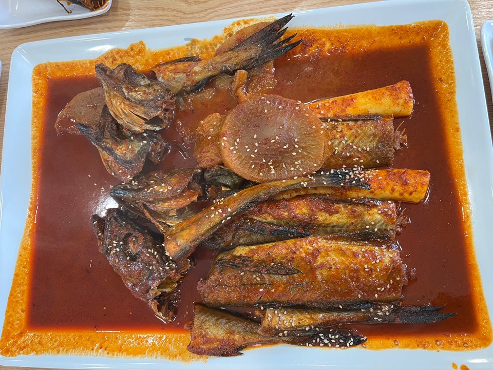코다리조림 음식점에 도착하자, 자박한 양념 냄새가 솔솔 퍼졌습니다.