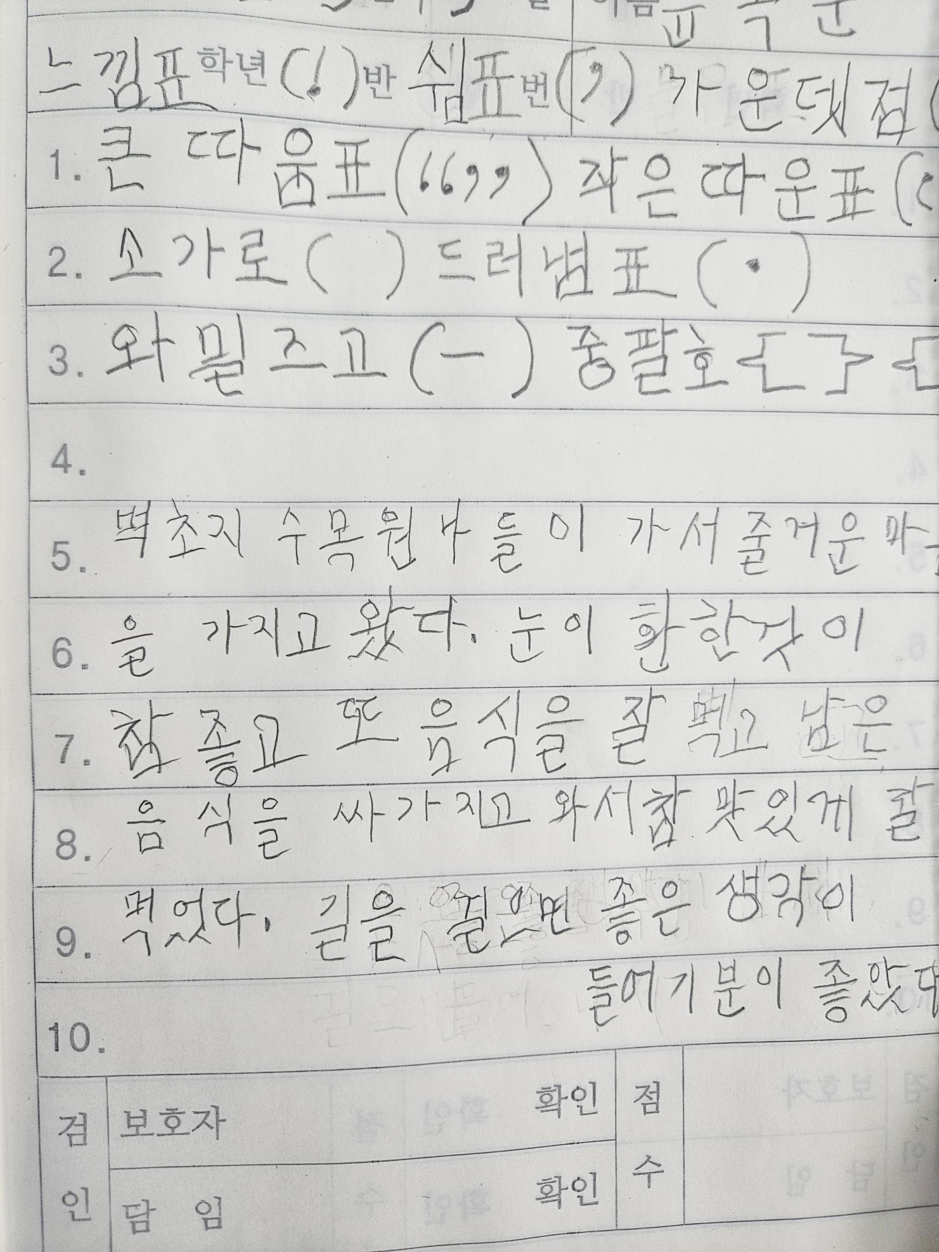 나들이 계획을 마친 후에는 문장의 부호에 대해 학습했습니다.