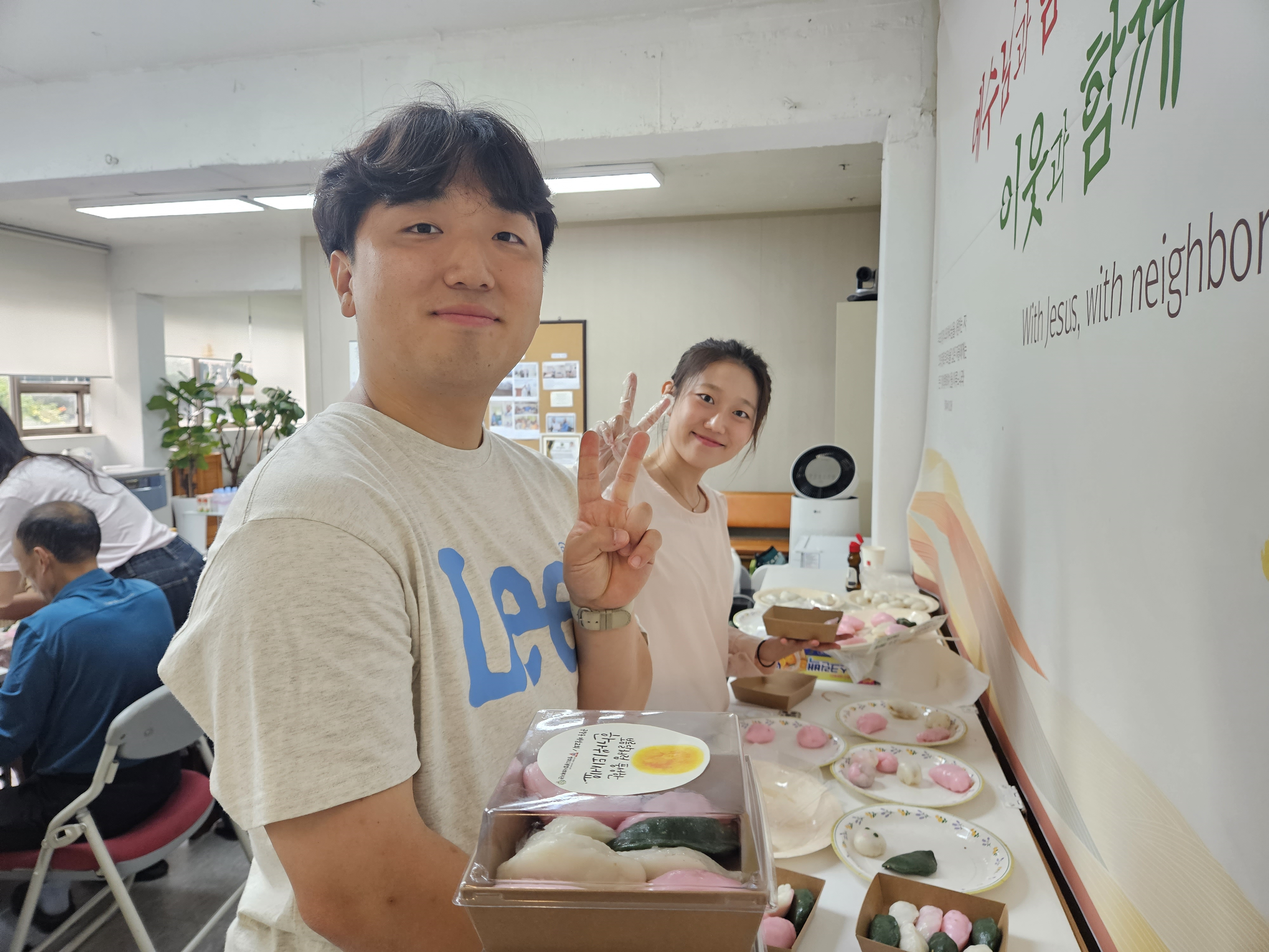 주민분들이 예성교회에서 주민들과 함께 만든 송편이라고 전할 수 있도록 안내했습니다.