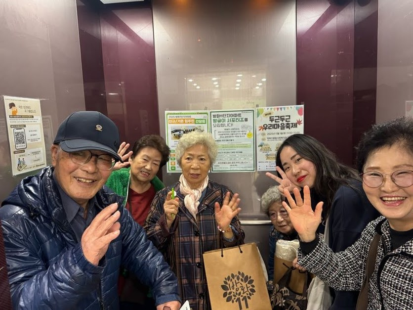 노래를 들으며 주민분들은 환하게 웃고 박수를 치며 분위기가 더욱 화기애애해졌습니다.