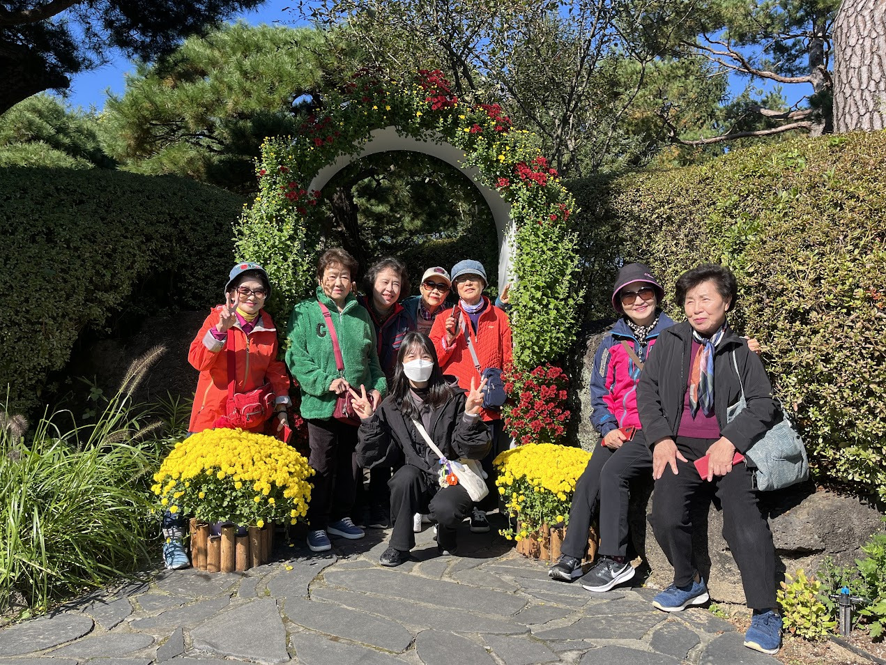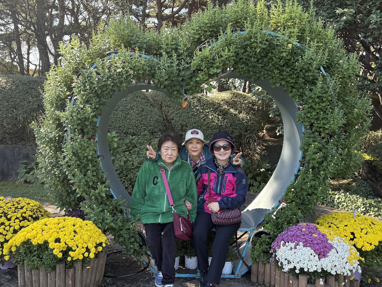 | ⭐문학 나들이 미션 활동 나눔 ⭐ "저는 하트 꽃을 찍었어요. 우리 다 서로 얼굴도 모르고, 다 같이 만난 적 없잖아요. 그런데 지금은 서로 언니, 언니 부르면서 지내고 있잖아요. 이게 사랑인 것 같아요. 우리의 이런 정을 표현하고 있는 하트 사진을 찍었어요." "등나무요. 등나무는 여러 줄기가 얽혀서 자라요. 그리고 여름에는 보라색 꽃이 예쁘게 펴서 눈에 딱 보이고요. 우리도 등나무처럼 함께 껴안고 어울리면서 여러 사람 눈에 보이는 길을 갔으면 해서 이 등나무를 찍었습니다." "꽃 사진이에요. 예뻐서 찍었어요. 날 닮지는 않은 것 같아요. 그런데 이렇게 예뻐봤으면 좋겠어요. 그런 소망을 담아서 찍어봤습니다." "나는 아기 천사를 찍었어요. 언제 내 나이가 80살이 되었는지 모르겠는데 문득 생각난 게 내가 언제 갈지는 몰라도 내가 하늘 나라에 가면 아기 천사가 되어서 엄마, 아버지 보고 싶어요. 특히 올케 보고 싶은 마음이 커요. 그런 마음을 담아서 찍었어요." "꽃을 찍었어요. 이 꽃이 나를 닮은 것 같아요. 꽃이 지금 활짝 피었어요. 근데 이 꽃이 피기까지 수많은 세월이 흘렀잖아요. 나도 지금 72살이고 아직 완성되지는 않았지만 나도 시간이 지나면서 조금씩 영글어지는 것 같아요. 옛날보다는 예쁜 모습으로 다듬어져 가고 있는 것 같고. 그런 점에서 닮은 것 같아요. 그리고 옆에 작은 꽃들이 있잖아요. 나보다 어리고 자라나는 후배들에게 아름다운 모습으로, 좋은 선한 영향력을 미치면서 나의 남은 인생을 살아가고 싶은 바람이 있어요." "갈대 사진을 찍었어요. 시골에 살 때 갈대를 참 많이 봤어요. 내가 갈대를 참 좋아하는데 이거 보니까 옛날 시골에 살 때 추억이 떠오르더라고요. 돌아가신 엄마 생각도 나고요." |