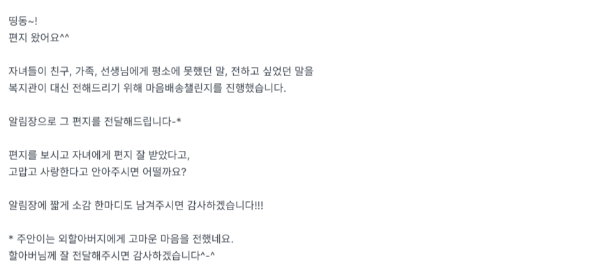 평소에 못했던 말, 전하고 싶었던 말을 엽서에 써서 편지함에 넣어두면