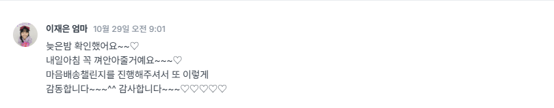 'ㅇㅇ언니, 매일매일 하루도 빠짐 없이 내 인사를 받아줘서 고마워♡'