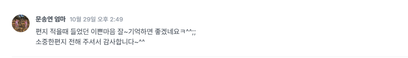 어머님들도 설레는 마음으로 편지 읽으신 듯합니다.
