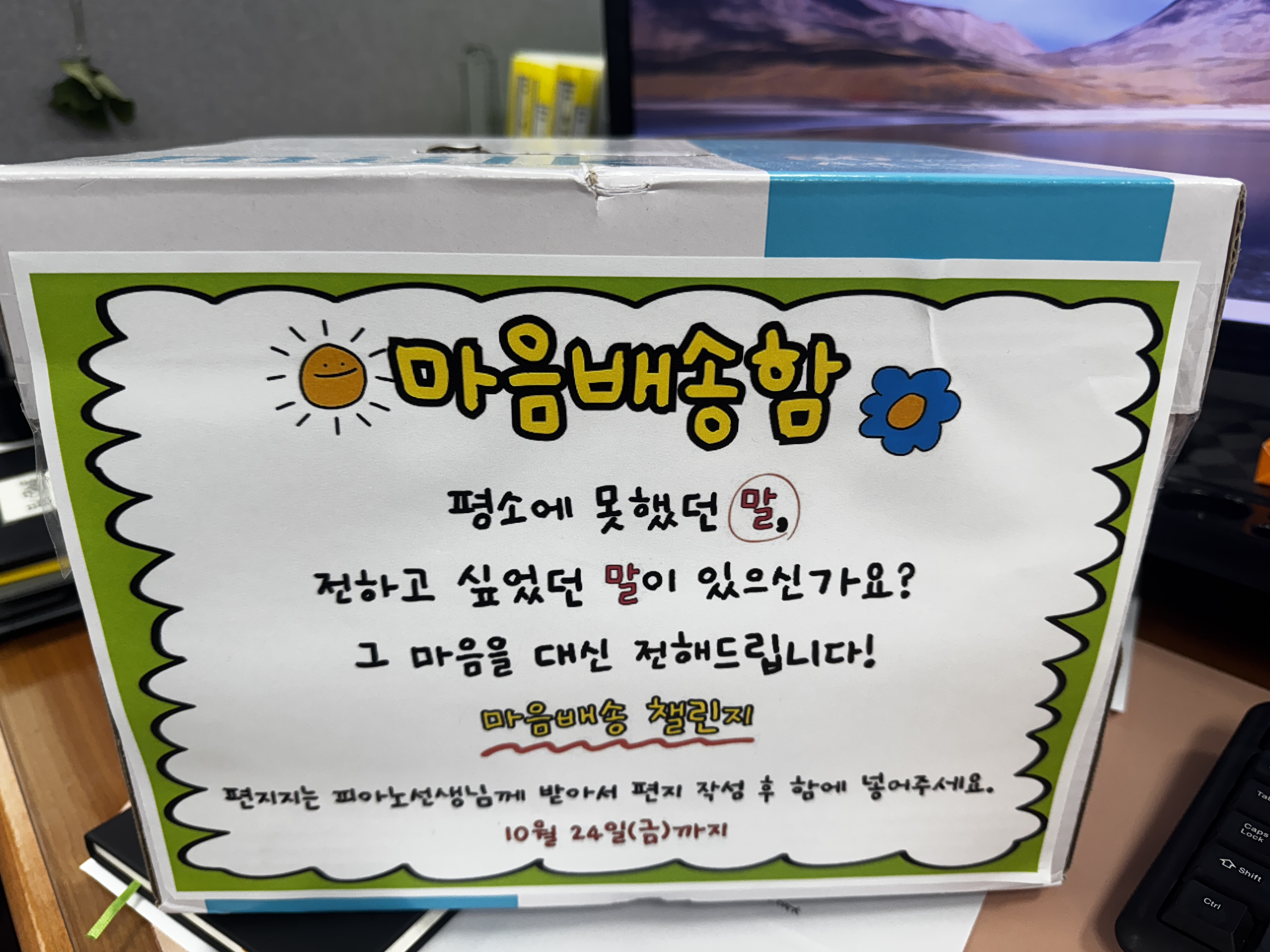 10월 피아노교실 활동은 '마음배송서비스'였습니다.
