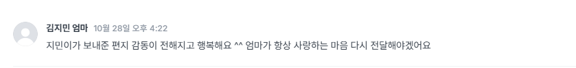 '엄마 매일 저를 많이많이 사랑해주셔서 감사해요'