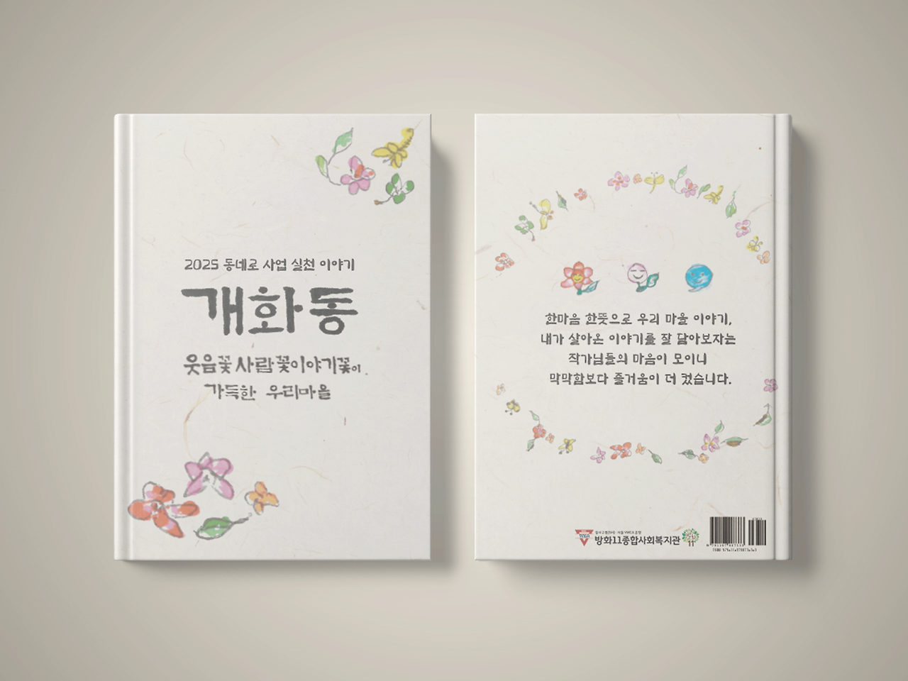 2024년 12월, 방화11종합사회복지관에서는 동네로 사업 실천 이야기를 담은 책 『사람 꽃이 피어나는 동네』를 출판했습니다. 담당 지역을 다니며 이웃 관계를 잇고 살맛 나는 동네를 만들기 위해 주민과 함께한 이야기를 기록하며 사회사업 실천하는 재미를 듬뿍 느꼈습니다.